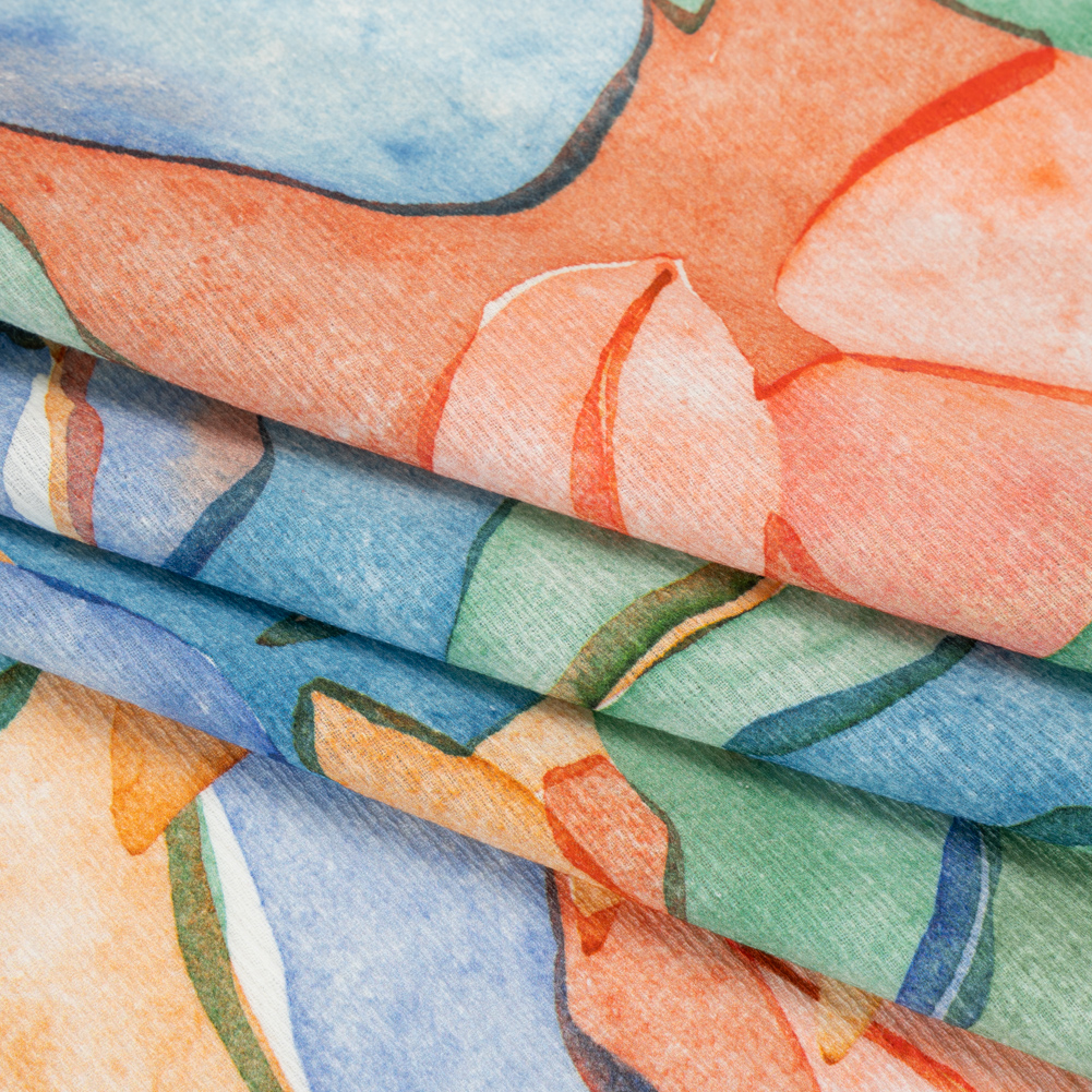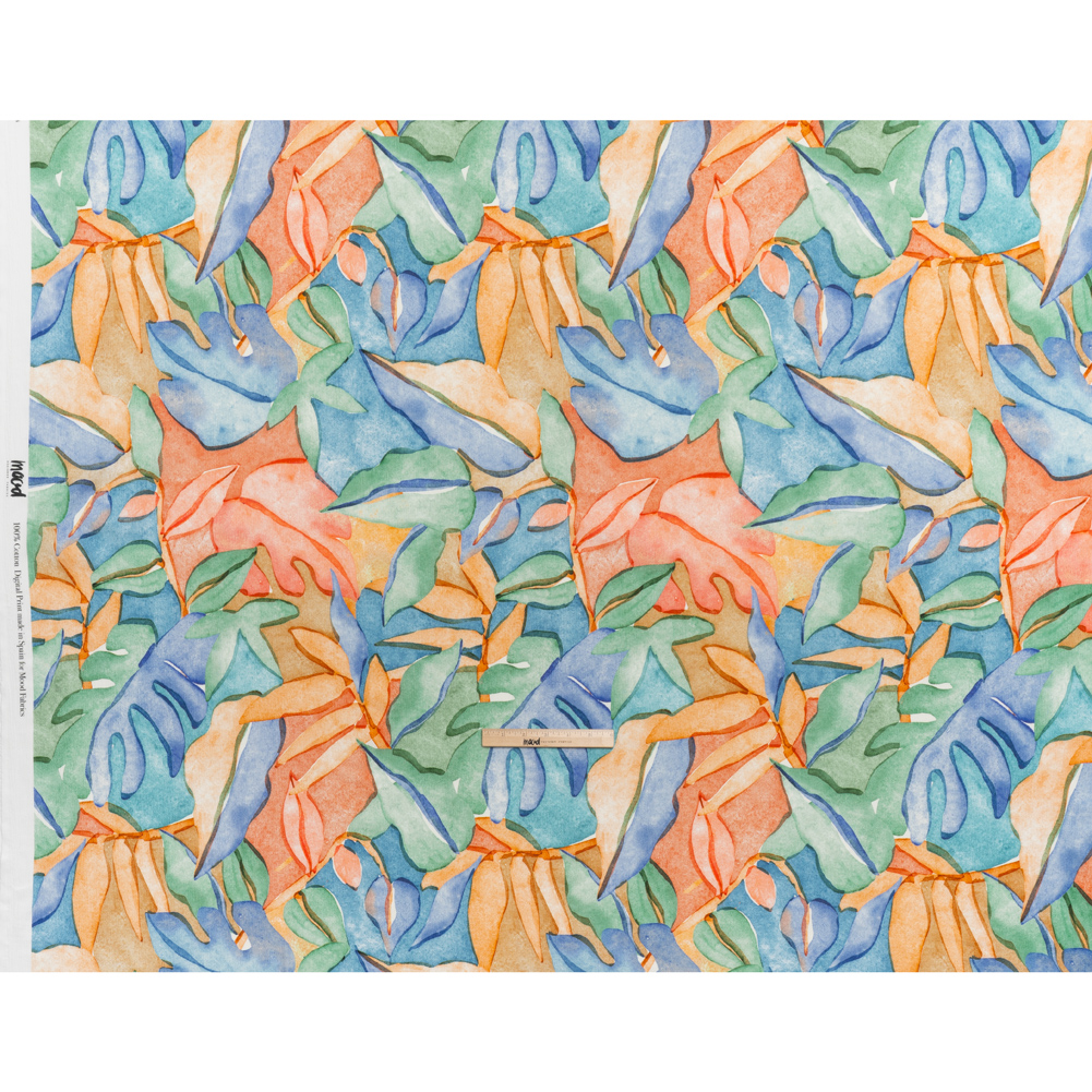 Slubbed Gauzy Cotton Woven - Green, Blue and Orange Watercolor Leaves - Mood Exclusive Cascading Canopy Print