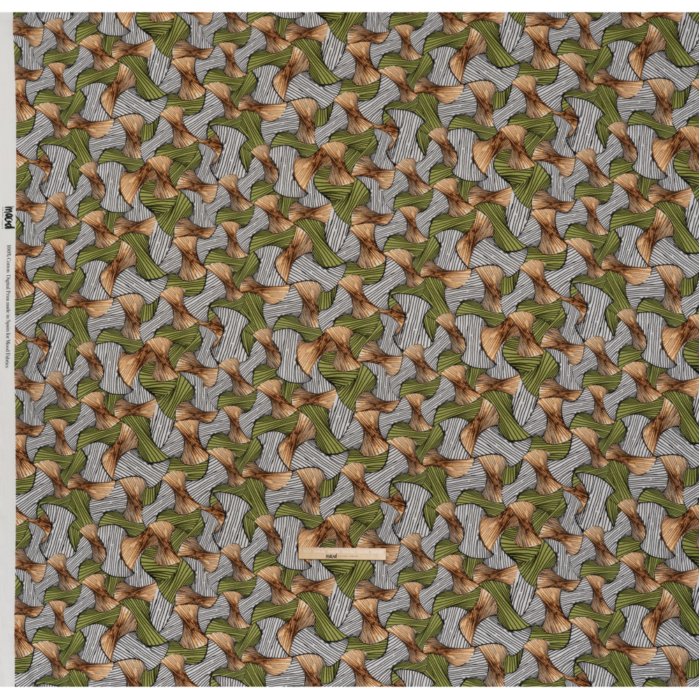 Slubbed Gauzy Cotton Woven - Green, Brown and White Abstract - Mood Exclusive Tantric Tessellations Print