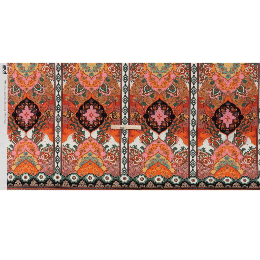 Take inspiration from your travels when sewing with our Mood Exclusive La Vie Boheme Slubbed Gauzy Cotton Woven Panel—featuring a dry, tactile hand and supple drape.Suggested Projects: Button-Up Shirts, Dresses, Skirts, PantsContent: 100% CottonStretch: NoneOpacity: TranslucentHues of pink, orange, teal, black, red, and white dance together in a mesmerizingly complex pattern, revealing new details the longer you gaze. Bohemian maximalism at its finest—this fabric boasts an explosion of colors, intricate tile motifs, and the free-spirit of unbound artistry. Composed of 100% cotton, the face yields a dry hand and tactile slubs, adding dimension and visual intrigue to your casual garments. With a lightweight feel and a supple drape, this breathable fabric is perfect for keeping you cool in the heat, lending itself to sundresses, breezy button-ups, wide-legged pants, tiered maxi-skirts, and more. Translucent, a lining may be desired for added opacity. Please Note: This is a panel that spans 55” by 26”.