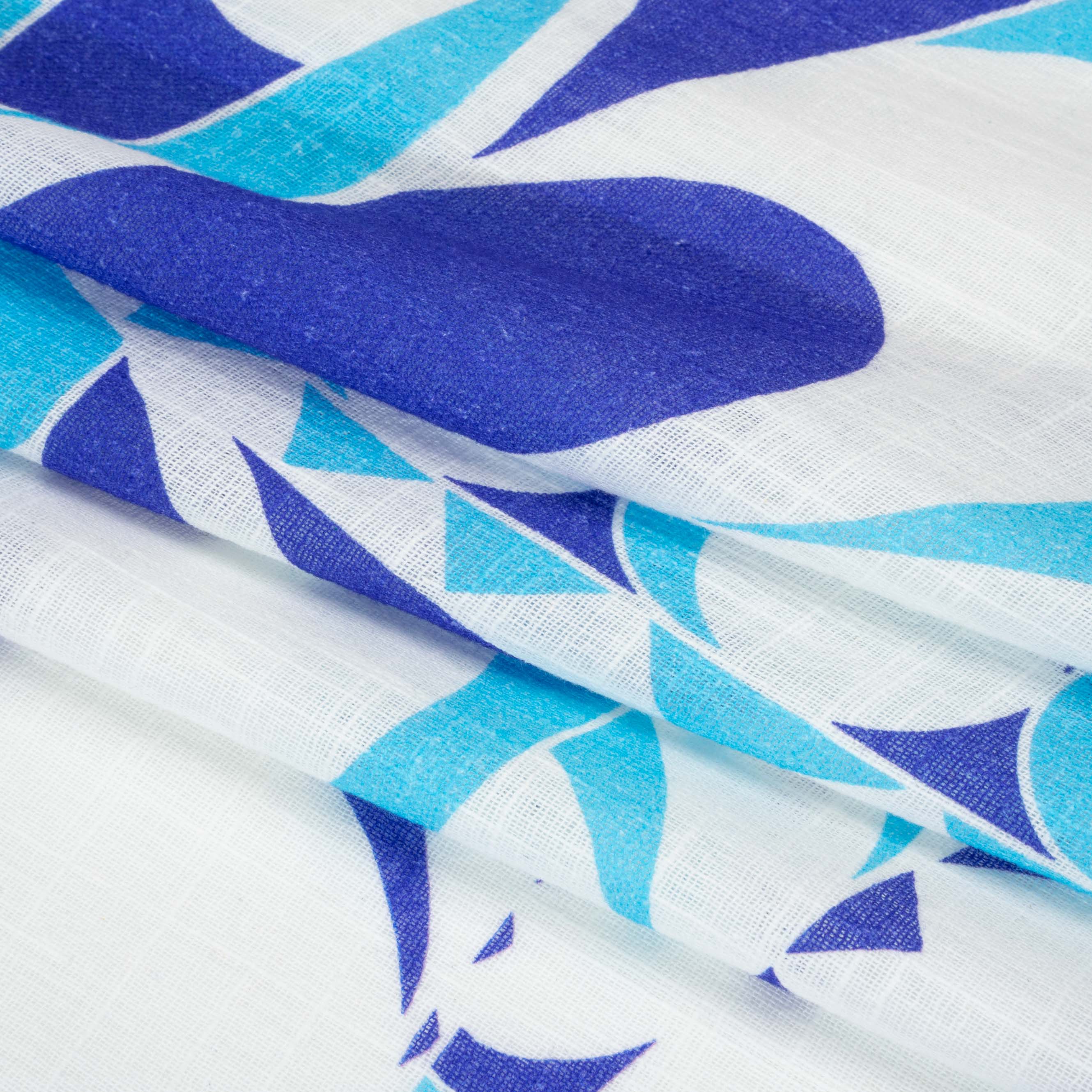 Constructed in the clouds, our Mood Exclusive Blue Circus of Clouds Slubbed Gauzy Cotton Woven sends ideas flying like trapeze artists. Geometric designs tumble through the white air, putting on a blue-toned performance of fantastical fun. An easy-going energy is emitted from the gauzy hand and slubbed face, sitting cool against your skin even in the warmest climates. Enhanced by a lightweight drape, this semi-sheer fabric brings a casual and ethereal feel to wrap blouses, maxi skirts, and sundresses. Plus, it perfectly complements a coastal aesthetic, embracing baggy silhouettes, ruffled sleeves, and other laid-back accents. A lining may be desired.