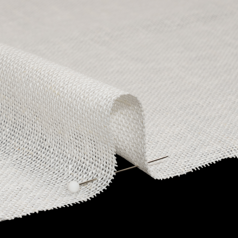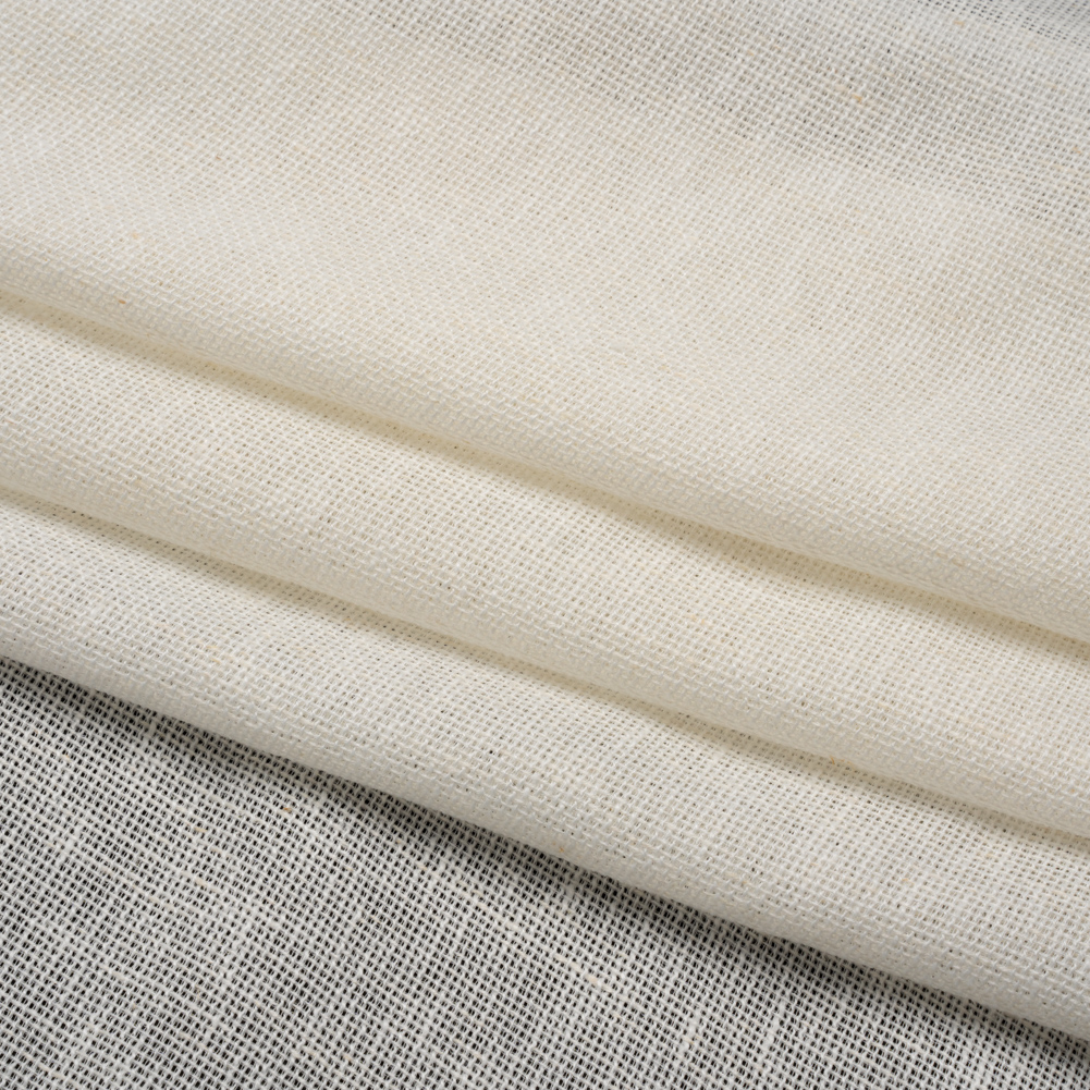 Composed of polyester, cotton, and linen, this Ivory Slubbed Open Weave Drapery Sheer Fabric features a slubbed texture, a medium weight, and a double-wide width of 118 inches.Suggested Projects: Drapery SheersContent: 83% Polyester, 10% Linen, 7% CottonStretch: NoneOpacity: SheerElevate your decor basics with this off white fabric! Sheers soften the light that pours through your windows, creating a relaxing allure throughout your entire home. With its double-wide measurements, you can easily tackle window treatments of any size. From valances in a farmhouse kitchen to long drapes in a beach house living room, down-to-earth creations ensue—this medium-weight, supple fabric fosters bespoke spaces that emphasize character. An open weave yields a gridded, net-like structure—in this case, enhanced by slubs. Here are some sewing tips for this type of construction: Longer stitch lengths often work best, as they help prevent the fabric from getting caught in your machine. As always, we suggest testing on a scrap first (you might need to adjust tension settings, too).As it frays easily, you will want to finish your seams with a serger, French seams, or, an overlock stitch.