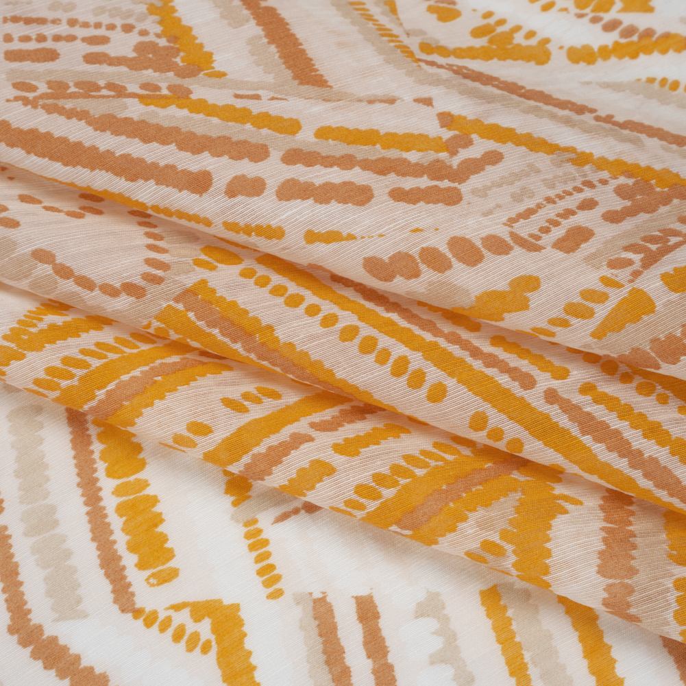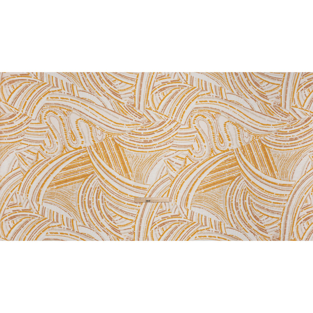 Slubbed Tencel Blend Woven Print - Ivory, Tan and Goldenrod Abstract Dotted Lines - Designer Deadstock