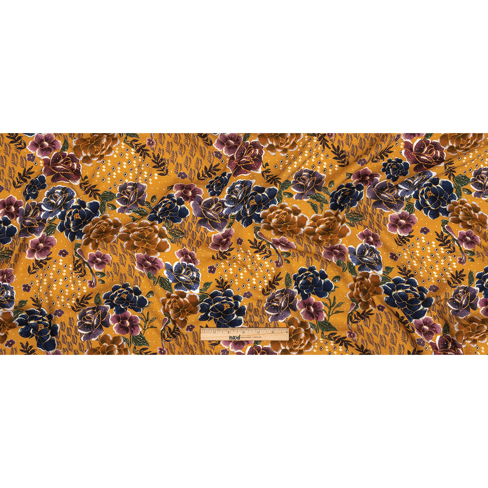 Slubbed Viscose Woven Print - Gamboge Yellow Diamonds and Floral - Mood Exclusive Melange de Fleurs