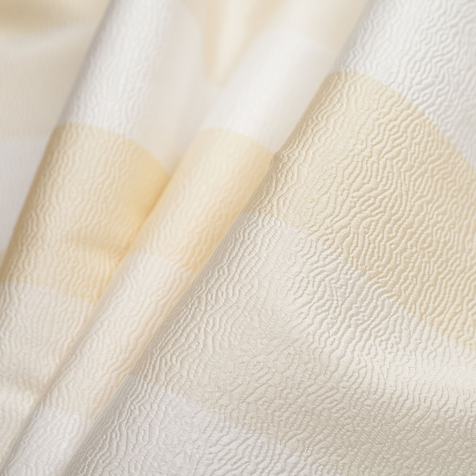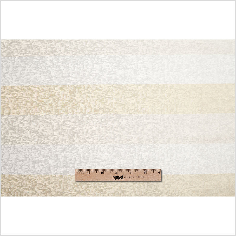Make a statement time and time again with this textural brocade! Stand apart from the rest with this luminous polyester brocade not only due to its unique and textural surface, but also due to the addition of shimmering stripes in coordinating colors.