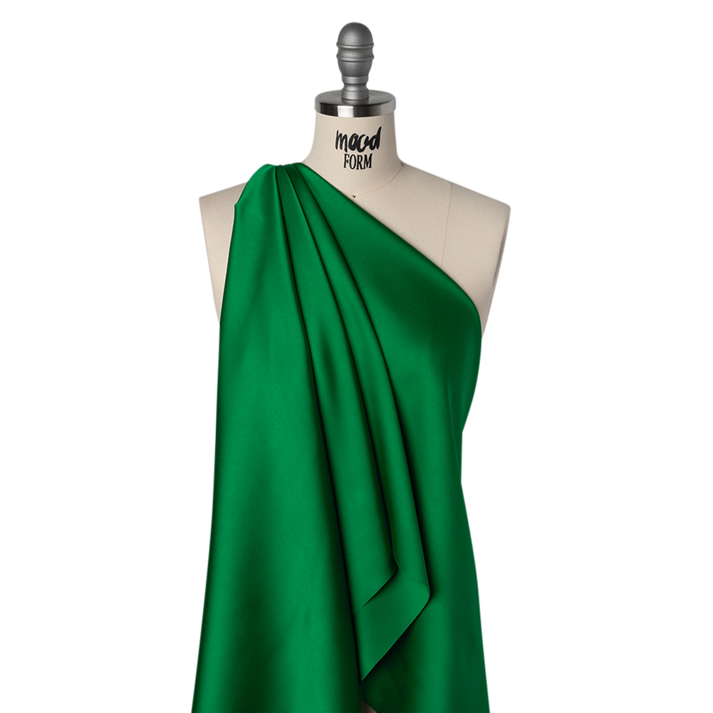 Vibrant energy bursts from every stitch of this Kelly Green Soft Double Face Polyester Twill—featuring a sleek hand and fluid drape.Suggested Projects: Gowns, Dresses, Blouses, Button-UpsContent: 100% PolyesterStretch: NoneOpacity: TranslucentGreen as fresh leaves, this twill yearns to have its time in the sun. Luxuriously luminous and double-faced, this polyester twill seems to catch light with liquid elegance. Sleek in hand with a fluid drape, it invites transformation into flowing blouses, crisp button-ups, swishy cocktail dresses, or gowns that move like liquid elegance from office hours to starry galas. Translucent and versatile, it can be layered for subtle allure or paired with a lining for full-bodied sophistication.