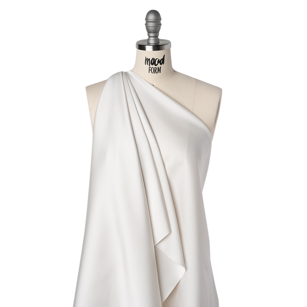 Give a softer touch to modern creations with this Off White Soft Double Face Polyester Twill—featuring a sleek hand and fluid drape.Suggested Projects: Gowns, Dresses, Blouses, Button-UpsContent: 100% PolyesterStretch: NoneOpacity: TranslucentElevate simple silhouettes with this off white twill. Luxuriously luminous and double-faced, this polyester twill seems to catch light with liquid elegance. Sleek in hand with a fluid drape, it invites transformation into flowing blouses, crisp button-ups, swishy cocktail dresses, or gowns that move like liquid elegance from office hours to starry galas. Translucent and versatile, it can be layered for subtle allure or paired with a lining for full-bodied sophistication.