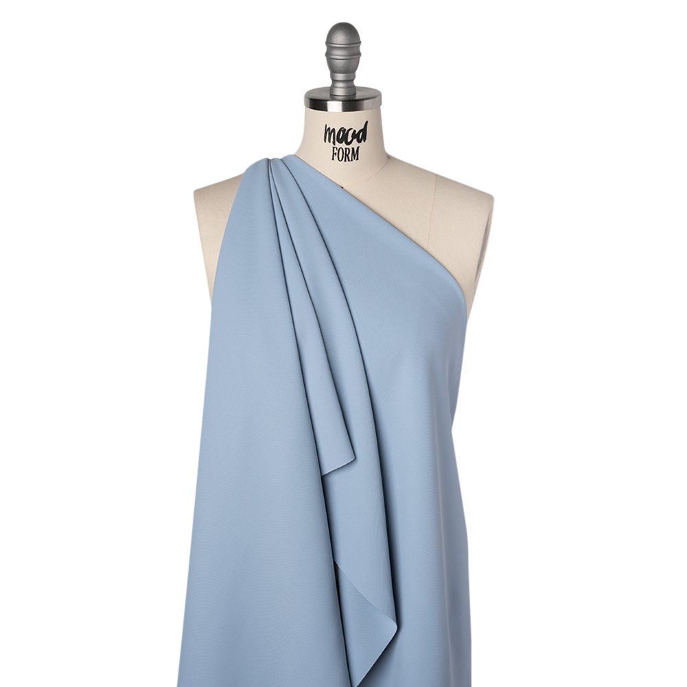 Greet the new dawn as daylight breaks over this Baby Blue Soft Lightweight Polyester Gabardine—featuring a smooth hand and fluid drape.Suggested Projects: Blouses, Suits, Skirts, DressesContent: 100% PolyesterStretch: Slight Mechanical GiveOpacity: Mostly OpaqueA breeze takes woven form with this baby blue gabardine. With a slight mechanical give that adds a spring to its step, and a smooth hand with a fluid, flowing drape, this fabric longs to dance into flirty, flirtatious silhouettes. From the boardroom to the ballroom, it twirls effortlessly into simple blouses, chic skirts, stunning dresses, or coordinating suit sets that move with playful elegance. Mostly opaque, it invites a lining for a more tailored fit or layering to let its airy fluidity shine while adding just the right touch of coverage.