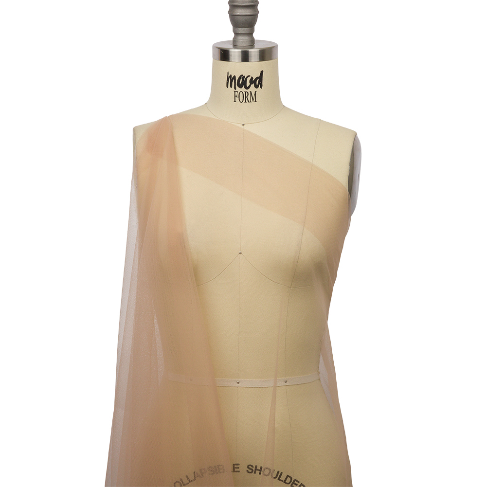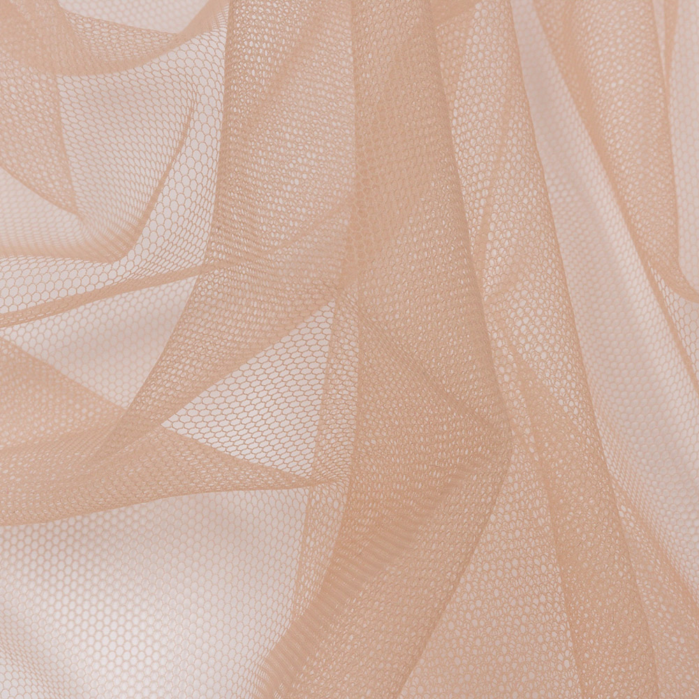 You will be a delicacy in this Croissant Soft Nylon Tulle! Featuring a lightweight feel, coarse hand, and airy drape, it’ll add otherworldly volume to your projects.Suggested Projects: Veils, Skirts, Dresses, AccentsContent: 100% NylonStretch: Mechanical GiveOpacity: TransparentPuff up your projects with this croissant-colored tulle. The creamy beige color will inspire elegant, captivating garments. While surprisingly flowy with a lightweight feel, this fabric still boasts tulle's characteristic coarse texture and open net weave. Add layers for voluminous skirts and gowns, or use this tulle on its own to create sheer accents geared towards couture fashion and any number of costume applications such as illusion necklines. Note that this material is transparent, so if a raised opacity is desired, a lining should be considered.