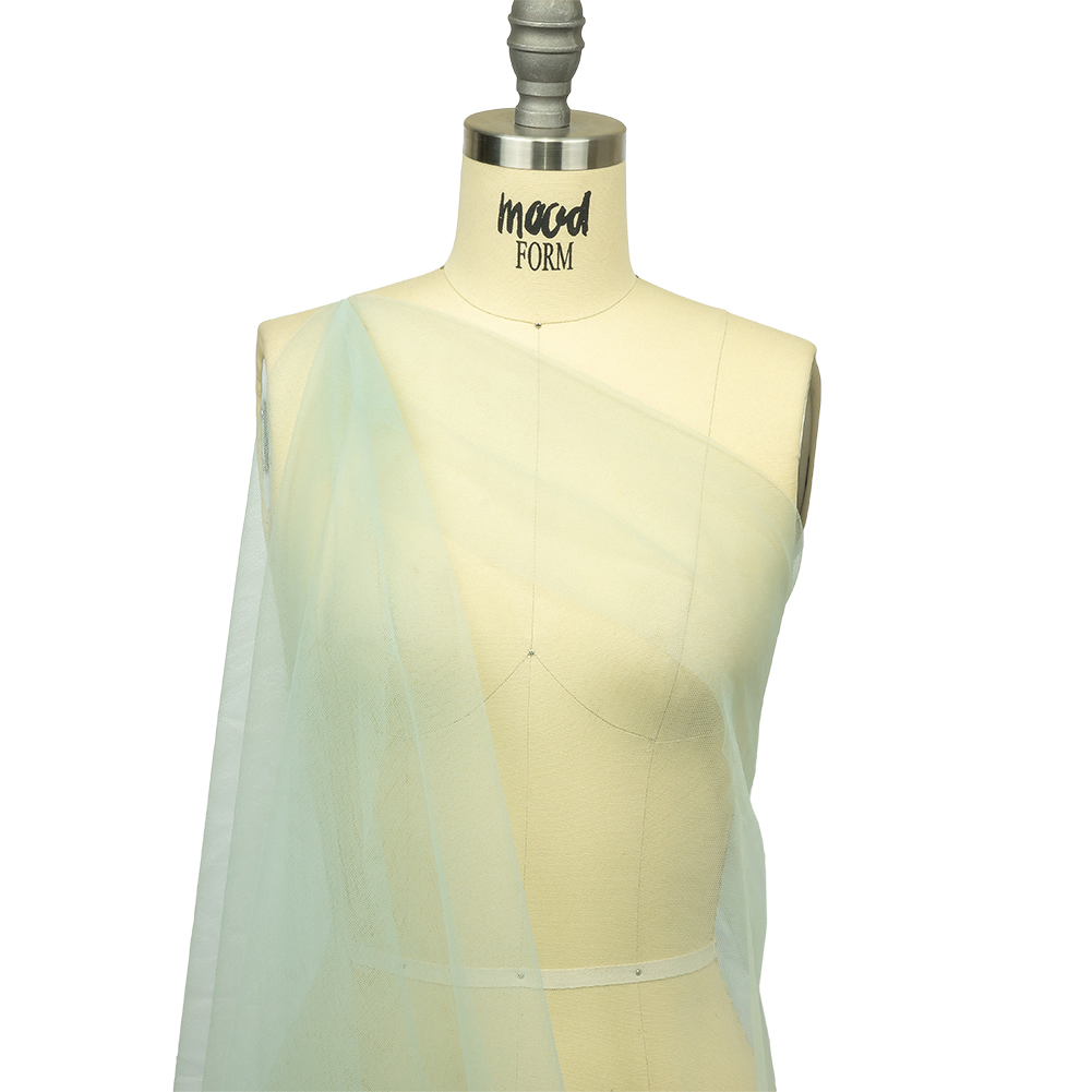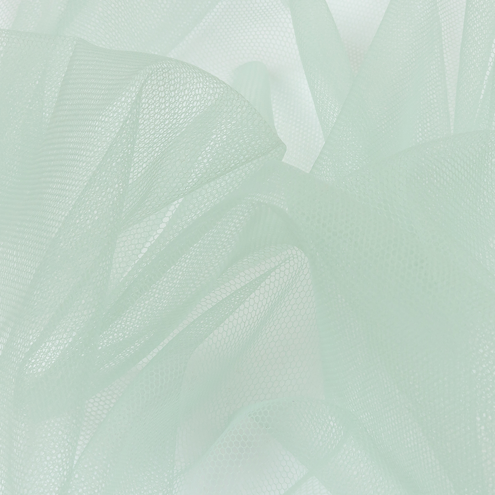 The color of Caribbean waters in moonlight, our Dusty Aqua Soft Nylon Tulle will satisfy your wanderlust! Featuring a lightweight feel, coarse hand, and airy drape, it’ll add otherworldly volume to your projects.Suggested Projects: Veils, Skirts, Dresses, AccentsContent: 100% NylonStretch: Mechanical GiveOpacity: TransparentListen to the waves calmly lap at the shore with this dusty aqua tulle. A dusty aqua color will inspire sweet, captivating garments. While surprisingly flowy with a lightweight feel, this fabric still boasts tulle's characteristic coarse texture and open net weave. Add layers for voluminous skirts and gowns, or use this tulle on its own to create sheer accents geared towards couture fashion and any number of costume applications such as illusion necklines. Note that this material is transparent, so if a raised opacity is desired, a lining should be considered.