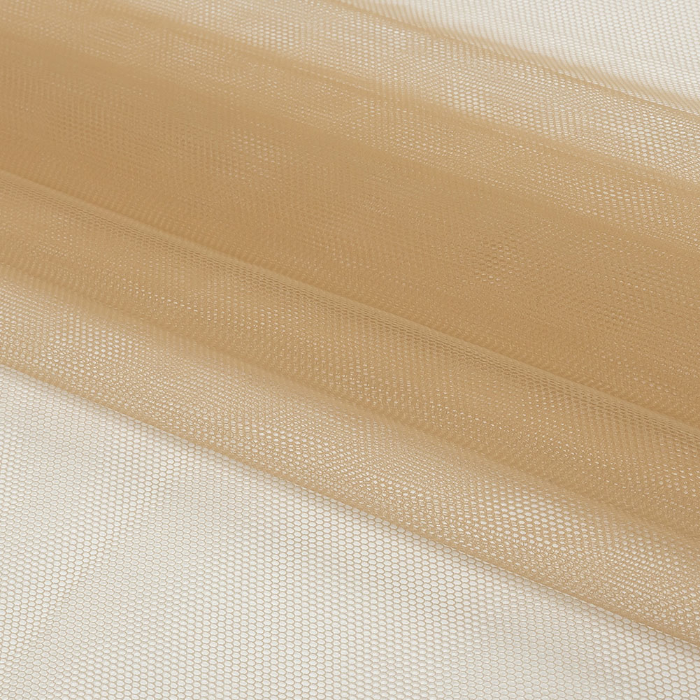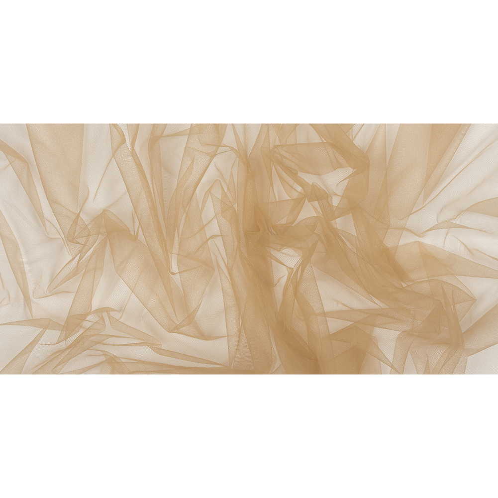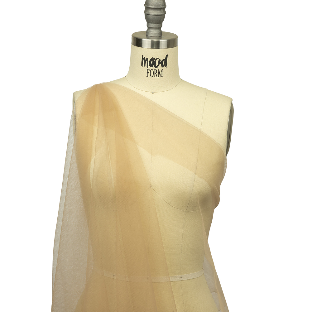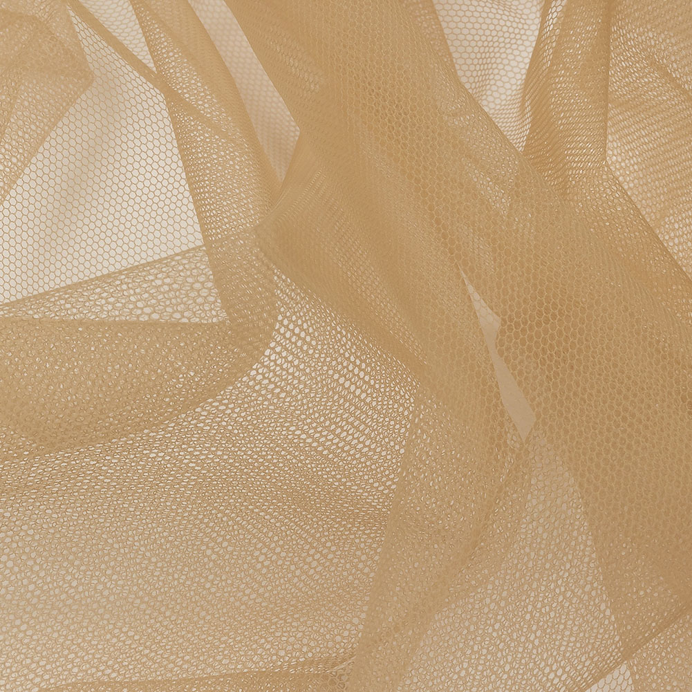 Grab your morning cup of joe and get ready to sew our Light Mocha Soft Nylon Tulle! Featuring a lightweight feel, coarse hand, and airy drape, it’ll add otherworldly volume to your projects.Suggested Projects: Veils, Skirts, Dresses, AccentsContent: 100% NylonStretch: Mechanical GiveOpacity: TransparentSet the bar high with this light mocha tulle. A light brown-beige color will inspire elegant, captivating garments. While surprisingly flowy with a lightweight feel, this fabric still boasts tulle's characteristic coarse texture and open net weave. Add layers for voluminous skirts and gowns, or use this tulle on its own to create sheer accents geared towards couture fashion and any number of costume applications such as illusion necklines. Note that this material is transparent, so if a raised opacity is desired, a lining should be considered.