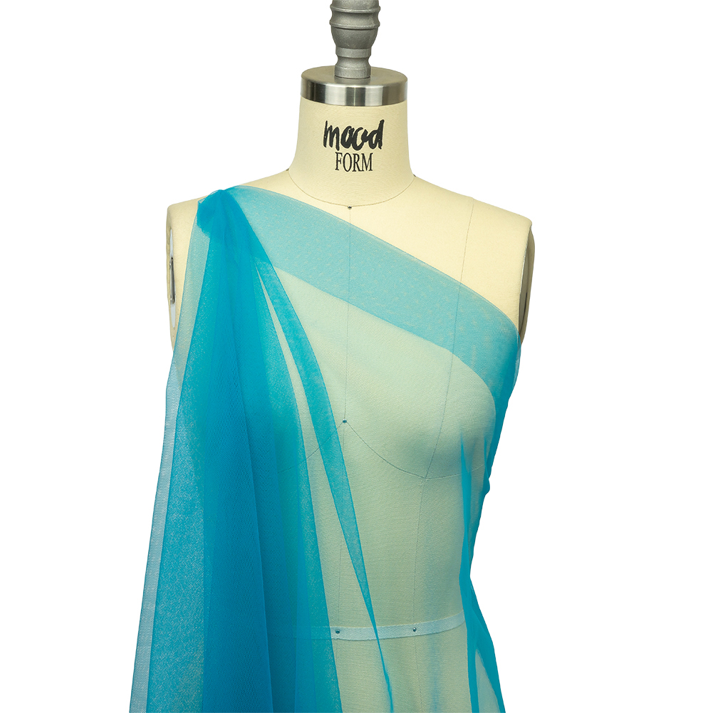 Sip on a glass of port at your next seaside soiree, wearing our Seaport Blue Soft Nylon Tulle! Featuring a lightweight feel, coarse hand, and airy drape, it’ll add otherworldly volume to your projects.Suggested Projects: Veils, Skirts, Dresses, AccentsContent: 100% NylonStretch: Mechanical GiveOpacity: TransparentYou’ll sea an ocean of ideas appear with this Seaport Blue tulle. A bright teal color will inspire playful, captivating garments. While surprisingly flowy with a lightweight feel, this fabric still boasts tulle's characteristic coarse texture and open net weave. Add layers for voluminous skirts and gowns, or use this tulle on its own to create sheer accents geared towards couture fashion and any number of costume applications such as illusion necklines. Note that this material is transparent, so if a raised opacity is desired, a lining should be considered.