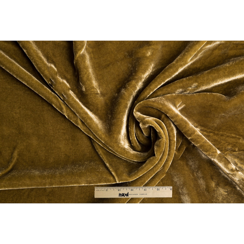This is one of the most fabulous pieces to come through the Mood doors as of late. Presenting an outstanding collection of silk and rayon velvets that will have you hooked just from the sight and obsessed after one touch. The handle is one of softest available and come paired with an ideal drape; there is nothing to dislike about this fabric. At a commanding 54" in width, this soft and elegant pile will be a designer's dream. Complete with no stretch, tight fitting garments would be difficult without adding bust darts, so take advantage of the phenomenal drape and make flowy pieces like A-line dresses, casual shirt dresses, or oversized flared cardigan; the options are limitless. Note: This fabric is dry clean only.