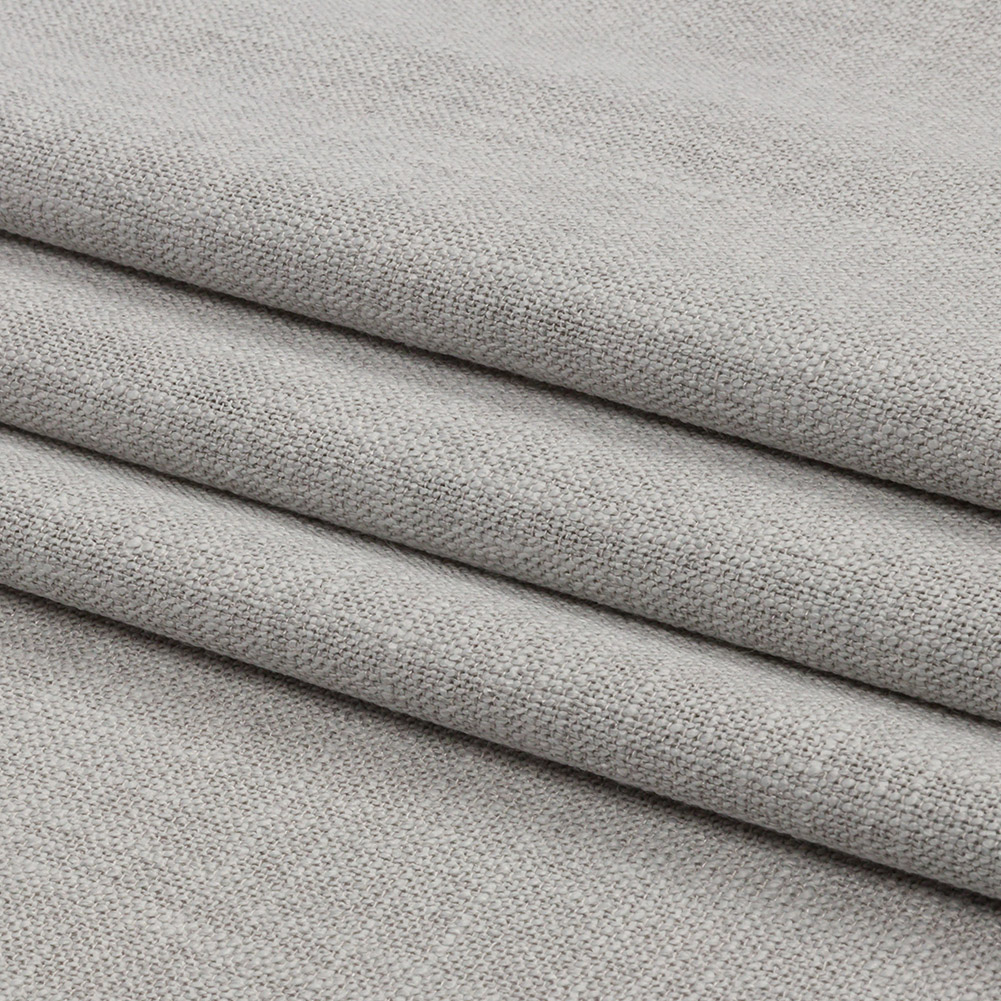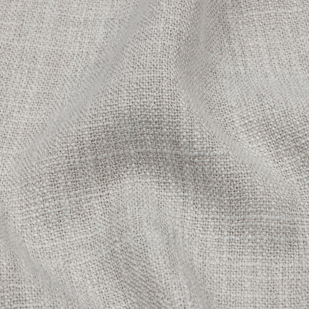 Keep your decor cool as can be with this British Imported Frost Soft Textured Recycled Polyester Drapery Woven. In a pale gray, the weave takes on a linen-like appearance, giving it a softly slubbed hand. With an easy drape and no stretch, create dramatic drapes, pooling curtains, elegant swags, valances, or even light upholstery projects like throw pillows and upholstered headboards. Slightly translucent, a lining can be added to increase opacity.
