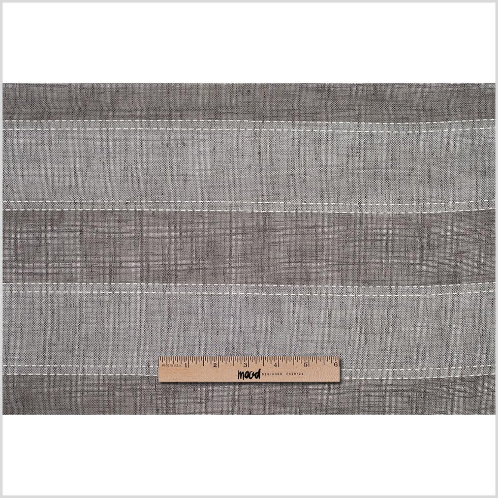 Have wide doors or windows and having a hard time finding a wide enough fabric to cover them? Well look no further because these polyester sheers are as wide as it gets! Presenting a very sheer polyester woven in gris that is 118 inches in width. Striped to add character, this lightweight woven would make delightful drapes for any windowsill or pair of French doors.