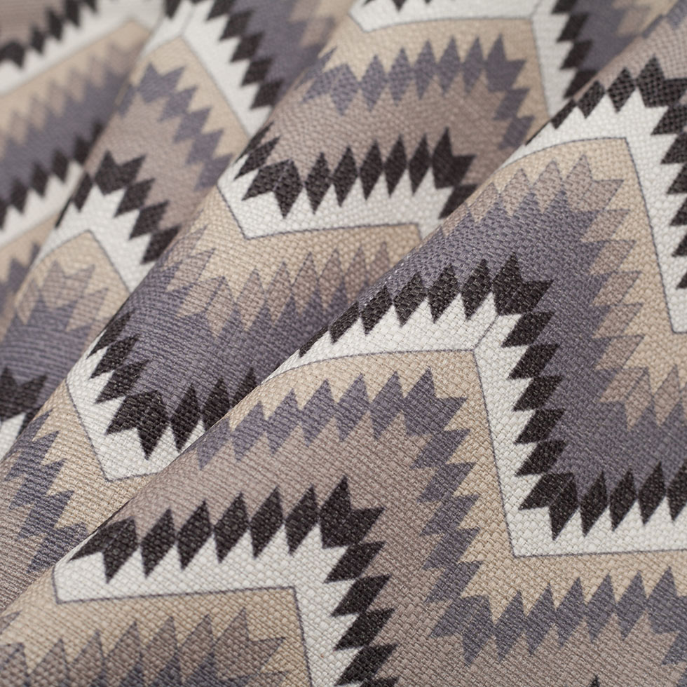 Brought to Mood from all the way from Spain, we have a fantastic, geometric, polyester/cotton canvas in a navy and beige coloration.