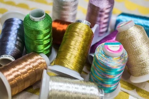 Spotlite™ is a metallic thread with a rayon core which reduces shredding and breakage while maintaining softness, drapability, and smooth stitching even at 800 spm on domestic machines.