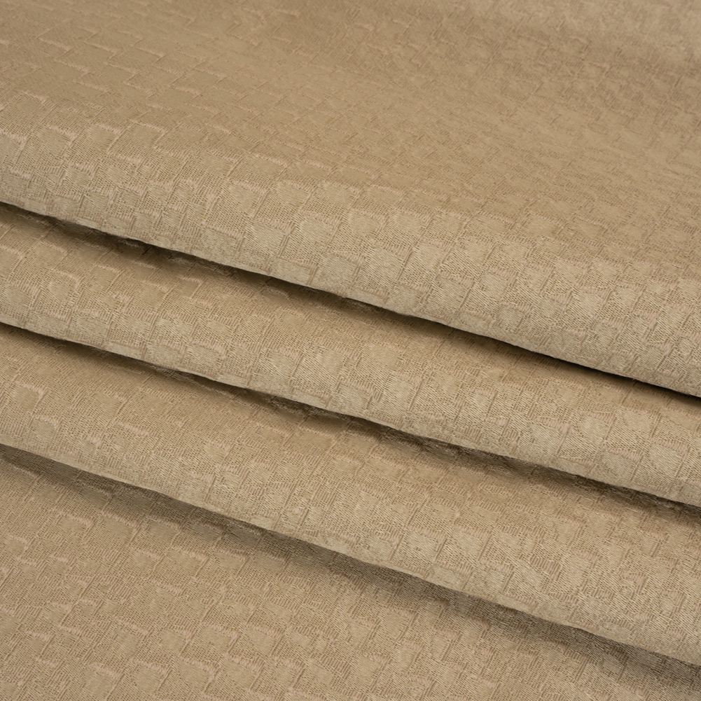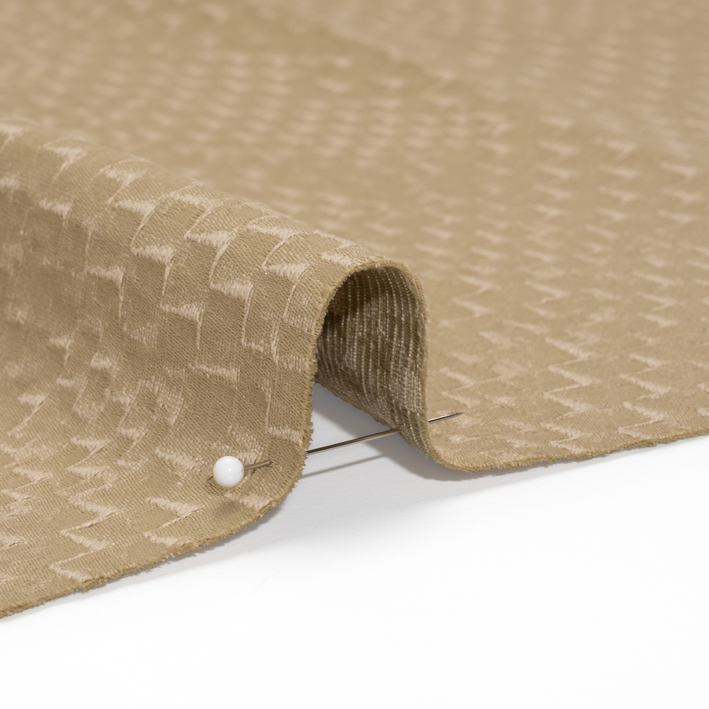 Step into luxurious drapery sewing projects with sustainable fibers, bold patterns, and dimensional texture thanks to this Stairstep Zig Zags Drapery Jacquard!Suggested Projects: Curtains, Valances, Drapes, ShadesContent: 65% Recycled Polyester, 28% Cotton, 7% PolyesterStretch: NoneOpacity: Mostly OpaqueThis Jacquard blends into your current style with ease! Beige markings form zig-zags across the lustrous face, similar to a staircase, yielding a sleek and pebbly hand. The complexity of a Jacquard weave creates a visually arresting, three-dimensional surface, recalling the texture of embroidery. It is supple and relatively lightweight, dreaming of tall windows to adorn, elegant bed frames to drape across, and formal dining rooms to elevate. Mostly opaque; a lining will add complete opacity and structure if desired.