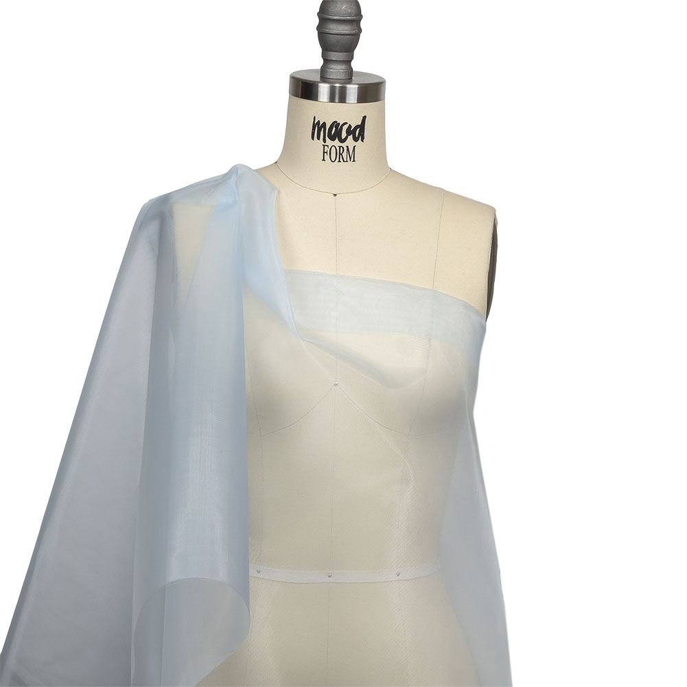 Refresh yourself—and your wardrobe—with our Ice Water Stiff Polyester Organdy! Seen here in a baby blue coloring, organdy is known for its stiff drape and coarse feel.