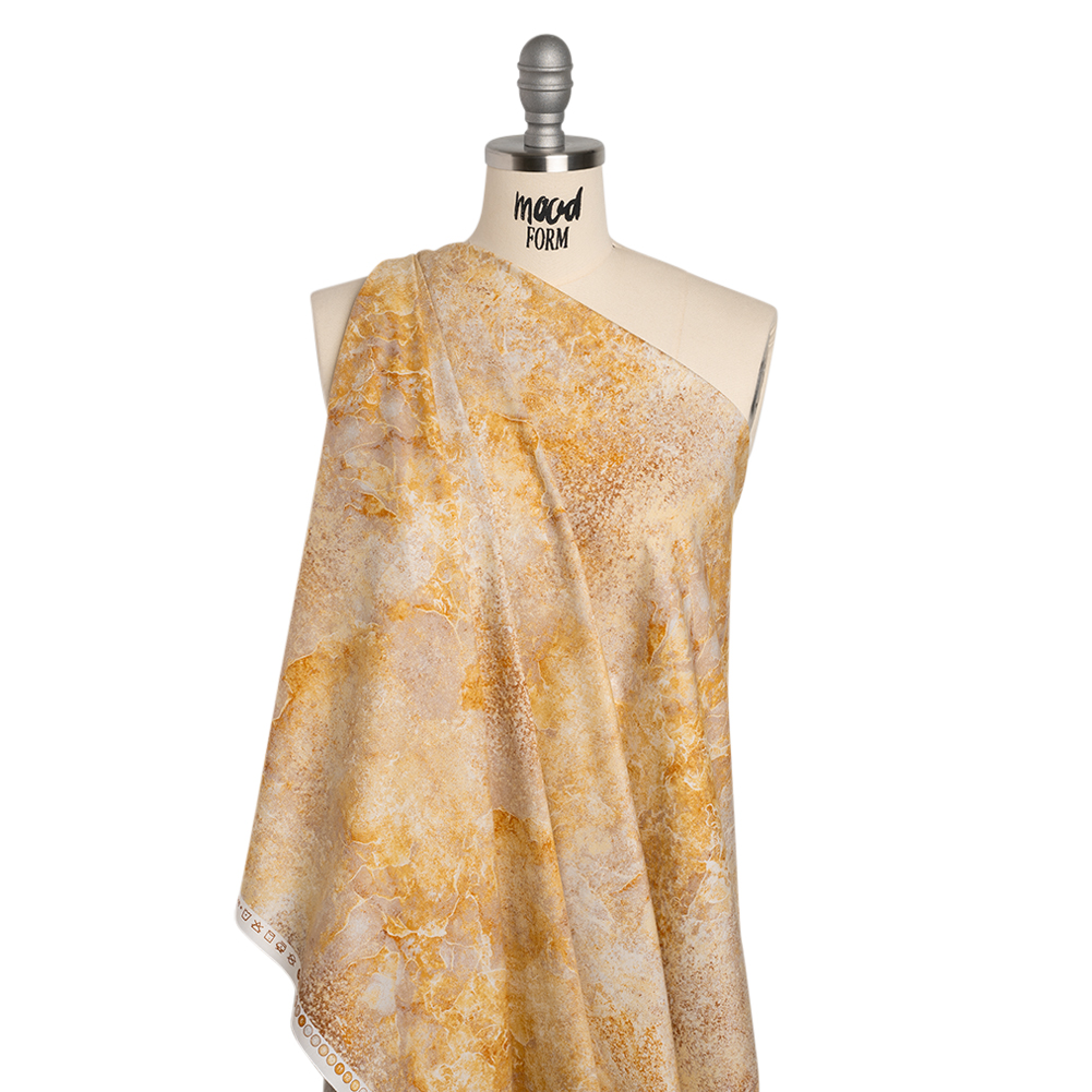 The pale rays of morning sunlight flow over your designs atop this Canyon Light Quartz Abstract Stonehenge Quilting Cotton. With a smooth hand and a supple drape, this fabric effortlessly bridges the worlds of fashion and quilting, offering both elegance and versatility for any creation.Suggested Projects: Dresses, Shirts, Jackets, Quilts, Light Home DecorContent: 100% CottonStretch: NoneOpacity: Slightly TranslucentAmplify the energy of your creations with the yellow ochre, pale yellow, and beige quartz abstract design streaked atop this quilting cotton. With a smooth hand, supple drape, and no stretch, this fabric is crafted for intricate quilt work—a stable weave and silky finish are perfect for anything from classic piecework and wholecloth quilting to appliqués and art quilts to English paper piecing—yet it effortlessly lends itself to lightweight home décor, craft, and fashion projects, too.Whether you’re designing breezy shift dresses, gathered patchwork skirts, or crisp button-downs and shorts, this fabric brings a touch of elegance to every stitch—or dream bigger with flowing floor-length gowns or sharply tailored jackets and trousers, perfect for an evening out. Slightly translucent, a lining is recommended for added opacity and a refined finish.