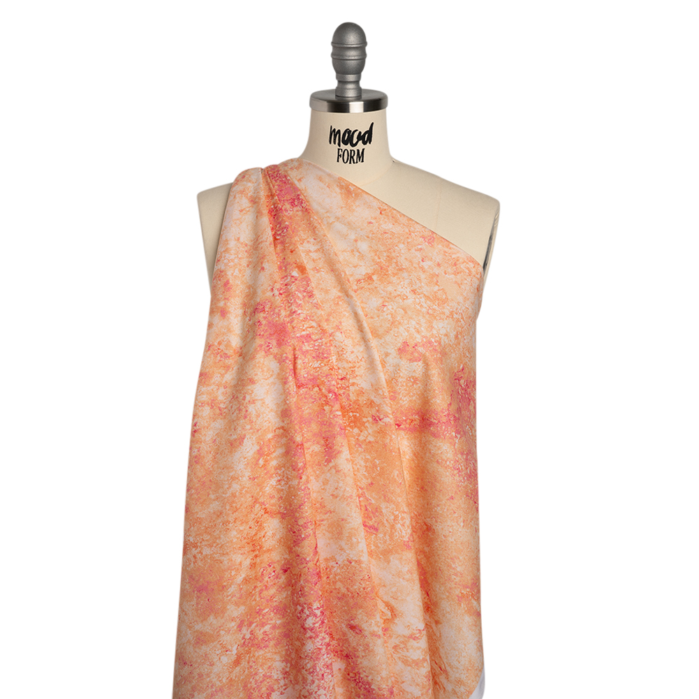 Feel the tropical breeze flow through this Marrakech Sandstone Abstract Stonehenge Quilting Cotton. With a smooth hand and a supple drape, this fabric effortlessly bridges the worlds of fashion and quilting, offering both elegance and versatility for any creation.Suggested Projects: Dresses, Shirts, Jackets, Quilts, Light Home DecorContent: 100% CottonStretch: NoneOpacity: Slightly TranslucentBuild up your dream wardrobe with this peach, coral, and hot pink sandstone abstract quilting cotton. With a smooth hand, supple drape, and no stretch, this fabric is crafted for intricate quilt work—a stable weave and silky finish are perfect for anything from classic piecework and wholecloth quilting to appliqués and art quilts to English paper piecing—yet it effortlessly lends itself to lightweight home décor, craft, and fashion projects, too.Whether you’re designing breezy shift dresses, gathered patchwork skirts, or crisp button-downs and shorts, this fabric brings a touch of elegance to every stitch—or dream bigger with flowing floor-length gowns or sharply tailored jackets and trousers, perfect for an evening out. Slightly translucent, a lining is recommended for added opacity and a refined finish.