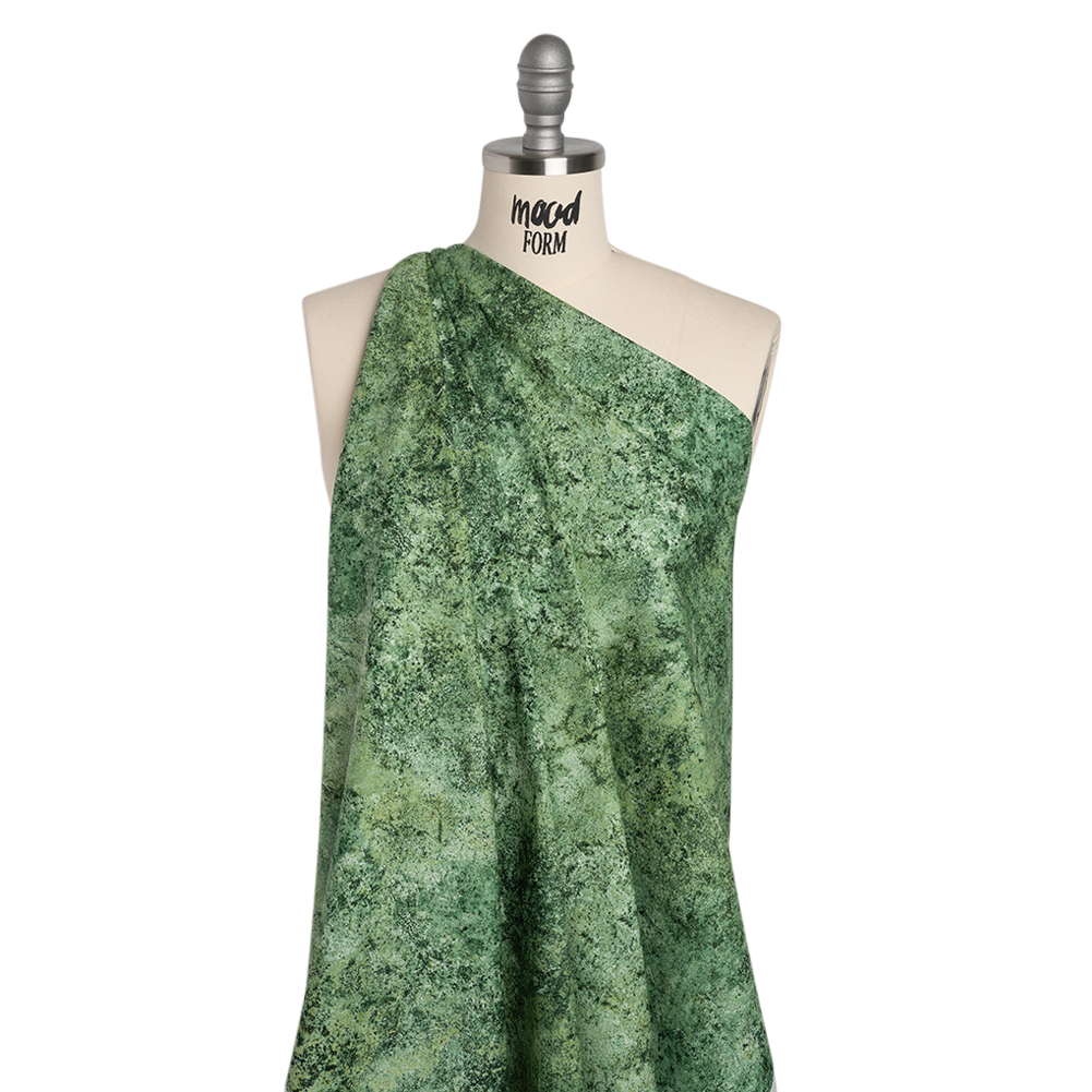 A forest of project possibilities unfurls from this Pine Ridge Slate Abstract Stonehenge Quilting Cotton. With a smooth hand and a supple drape, this fabric effortlessly bridges the worlds of fashion and quilting, offering both artistry and versatility for any creation.Suggested Projects: Dresses, Shirts, Jackets, Quilts, Light Home DecorContent: 100% CottonStretch: NoneOpacity: Slightly TranslucentCreate your very own abstract expressionist masterpiece with the green slate abstract design of this quilting cotton. With a smooth hand, supple drape, and no stretch, this fabric is crafted for intricate quilt work—a stable weave and silky finish are perfect for anything from classic piecework and wholecloth quilting to appliqués and art quilts to English paper piecing—yet it effortlessly lends itself to lightweight home décor, craft, and fashion projects, too.Whether you’re designing breezy shift dresses, gathered patchwork skirts, or crisp button-downs and shorts, this fabric brings a touch of elegance to every stitch—or dream bigger with flowing floor-length gowns or sharply tailored jackets and trousers, perfect for an evening out. Slightly translucent, a lining is recommended for added opacity and a refined finish.