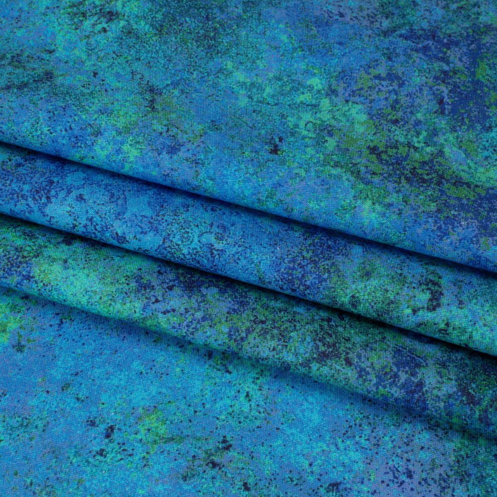 Dive into your next design with this Blue Lagoon Textural Abstract Stonehenge 108” Wide Quilting Cotton. With a smooth hand and a supple drape, this fabric Suggested Projects: Dresses, Shirts, Jackets, Quilts, Light Home DecorContent: 100% CottonStretch: NoneOpacity: Slightly TranslucentAs captivating as a Pollock masterpiece, this blue and green quilting cotton channels the raw energy of splattered paint—its textural, abstract design evoking the chaotic beauty of a canvas mid-stroke, perfect for crafting elevated eveningwear with an artistic edge. With a smooth hand, supple drape, and no stretch, this fabric is crafted for intricate quilt work—a stable weave and silky finish are perfect for anything from classic piecework and wholecloth quilting to appliqués and art quilts to English paper piecing—yet it effortlessly lends itself to lightweight home décor, craft, and fashion projects, too.Whether you’re designing breezy shift dresses, gathered patchwork skirts, or crisp button-downs and shorts, this fabric brings a touch of elegance to every stitch—or dream bigger with flowing floor-length gowns or sharply tailored jackets and trousers, perfect for an evening out. Slightly translucent, a lining is recommended for added opacity and a refined finish.