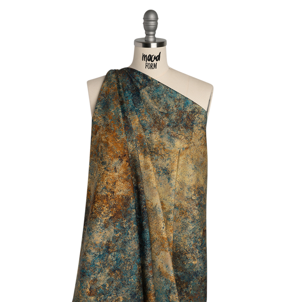 We’ve found the eighth wonder of the world within this Oxidized Earth Textural Abstract Stonehenge 108” Wide Quilting Cotton. With a smooth hand and a supple drape, this fabric effortlessly bridges the wide worlds of fashion and quilting, offering both elegance and versatility for any creation.Suggested Projects: Dresses, Shirts, Jackets, Quilts, Light Home DecorContent: 100% CottonStretch: NoneOpacity: Slightly TranslucentAs captivating as a Pollock masterpiece, this yellow, orange, deep teal, and brown quilting cotton channels the raw energy of splattered paint—its textural, abstract design evoking the chaotic beauty of a canvas mid-stroke, perfect for crafting elevated eveningwear with an artistic edge. With a smooth hand, supple drape, and no stretch, this fabric is crafted for intricate quilt work—a stable weave and silky finish are perfect for anything from classic piecework and wholecloth quilting to appliqués and art quilts to English paper piecing—yet it effortlessly lends itself to lightweight home décor, craft, and fashion projects, too.Whether you’re designing breezy shift dresses, gathered patchwork skirts, or crisp button-downs and shorts, this fabric brings a touch of elegance to every stitch—or dream bigger with flowing floor-length gowns or sharply tailored jackets and trousers, perfect for an evening out. Slightly translucent, a lining is recommended for added opacity and a refined finish.