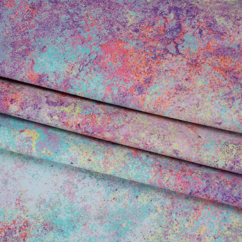 Your designs will take on a dreamy quality with this Pastel Textural Abstract Stonehenge 108” Wide Quilting Cotton. With a smooth hand and a supple drape, this fabric effortlessly bridges the wide worlds of fashion and quilting, offering both elegance and versatility for any creation.Suggested Projects: Dresses, Shirts, Jackets, Quilts, Light Home DecorContent: 100% CottonStretch: NoneOpacity: Slightly TranslucentAs captivating as a Pollock masterpiece, this pastel blue, yellow, coral, and purple quilting cotton channels the raw energy of splattered paint—its textural, abstract design evoking the chaotic beauty of a canvas mid-stroke, perfect for crafting elevated eveningwear with an artistic edge. With a smooth hand, supple drape, and no stretch, this fabric is crafted for intricate quilt work—a stable weave and silky finish are perfect for anything from classic piecework and wholecloth quilting to appliqués and art quilts to English paper piecing—yet it effortlessly lends itself to lightweight home décor, craft, and fashion projects, too.Whether you’re designing breezy shift dresses, gathered patchwork skirts, or crisp button-downs and shorts, this fabric brings a touch of elegance to every stitch—or dream bigger with flowing floor-length gowns or sharply tailored jackets and trousers, perfect for an evening out. Slightly translucent, a lining is recommended for added opacity and a refined finish.