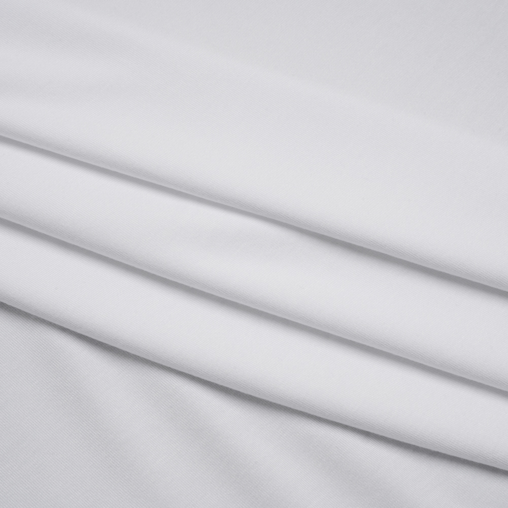 Snowflakes, carried on the winter breeze, alight upon this White Stretch Bamboo Jersey—featuring a soft hand and fluid drape.Suggested Projects: T-Shirts, Tank Tops, Skirts, DressesContent: 95% Bamboo, 5% SpandexStretch: 75% All-WayOpacity: OpaqueWhether you're lounging at home or running errands, this white bamboo jersey is the perfect companion for your day. It's incredible softness and lightweight feel make it ideal for everyday wear. Once you touch it, you’ll never want to take it off! With a 75% all-way stretch, soft hand, and fluid drape, it effortlessly inspires everything from simple tees and tanks to flattering fit-and-flare dresses. Opaque and versatile, a lining isn’t needed for most projects.