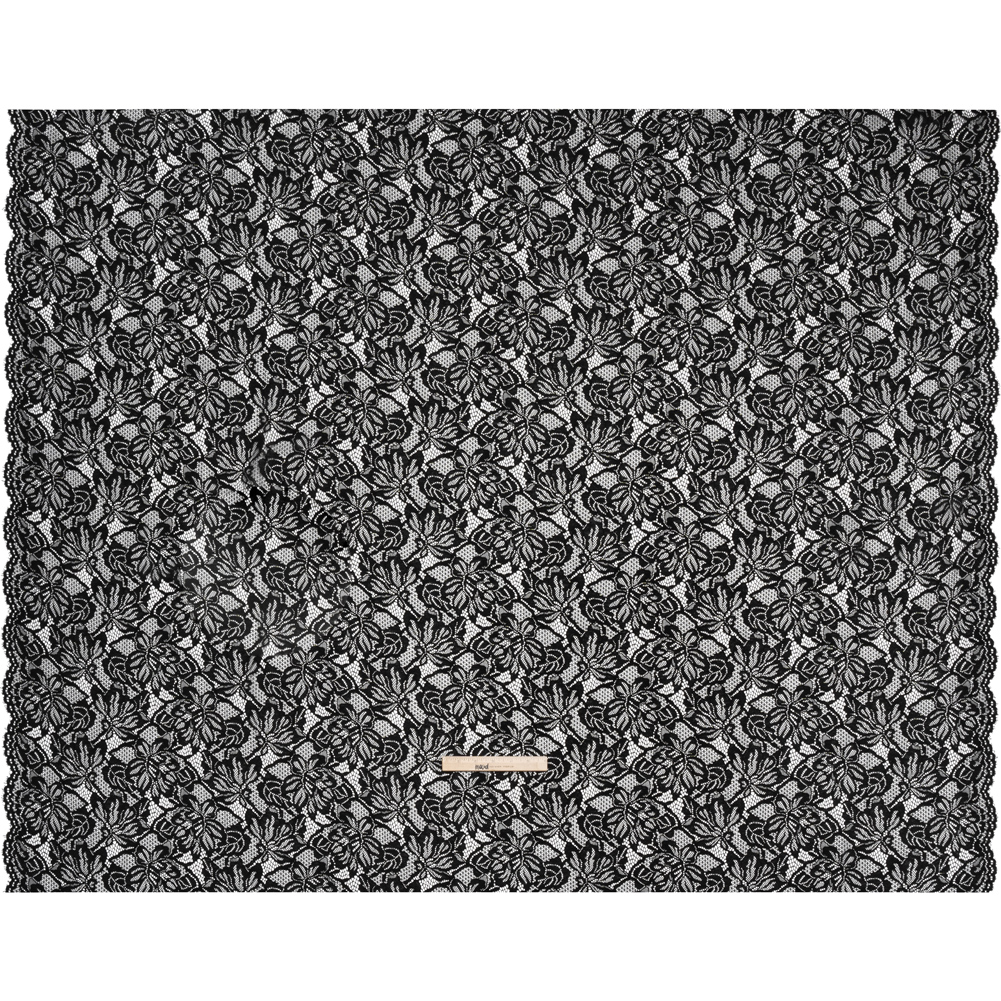 Keep cool in the shade in this Black Tropical Blossoms Stretch Corded Lace with Finished Edges—featuring a soft, tactile hand and flexible drape.Suggested Projects: Blouses, Skirts, Dresses, LingerieContent: 40% Nylon, 34% Cotton, 21% Rayon, 5% SpandexStretch: 25% WarpwiseOpacity: SheerIn a black hue, tropical flowers bloom across this corded lace panel, complete with finished edges. This particular fabric has a soft yet tactile hand—thanks to the thin cords running over the design—and features a fluid and flexible drape. With a slight stretch through the warp, this lace lends itself wonderfully to bodycon and loose, flowing silhouettes alike. Use it to create elegant gowns with long trains, mock-collar blouses, flowing skirts, or some lavish lingerie. Due to the nature of lace, some portions of this fabric are open so a lining may be desired for opacity.