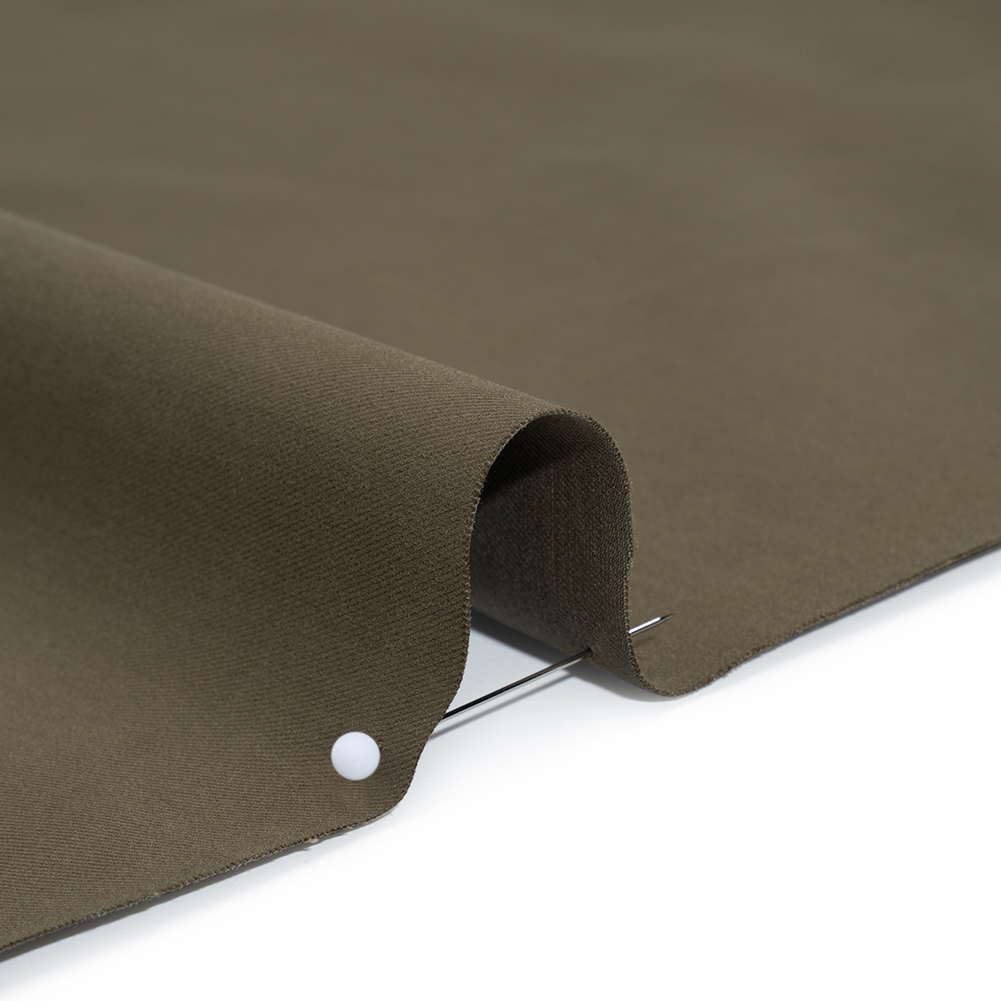 Bring some order to your wardrobe with this Army Green Stretch Cotton and Cashmere Twill—boasting a soft, sleek hand, crisp drape, and slight stretch.Suggested Projects: Pants, Skirts, Dresses, BlazersContent: 95% Cotton, 4% Cashmere, 1% SpandexStretch: 10% WeftwiseOpacity: OpaqueThis twill toes the line between green and brown, ready to bring order to your workwear. With a soft, sleek hand and crisp drape, this cotton and cashmere twill is a polished staple that means business—with a slight stretch through the weft offering just enough to keep things comfortable. Use it to create sharp blazers, crisp trousers, sleek pencil skirts, or sheath dresses designed to move with you through your days. Opaque, you can be confident knowing everything’s covered without needing to add extra weight.