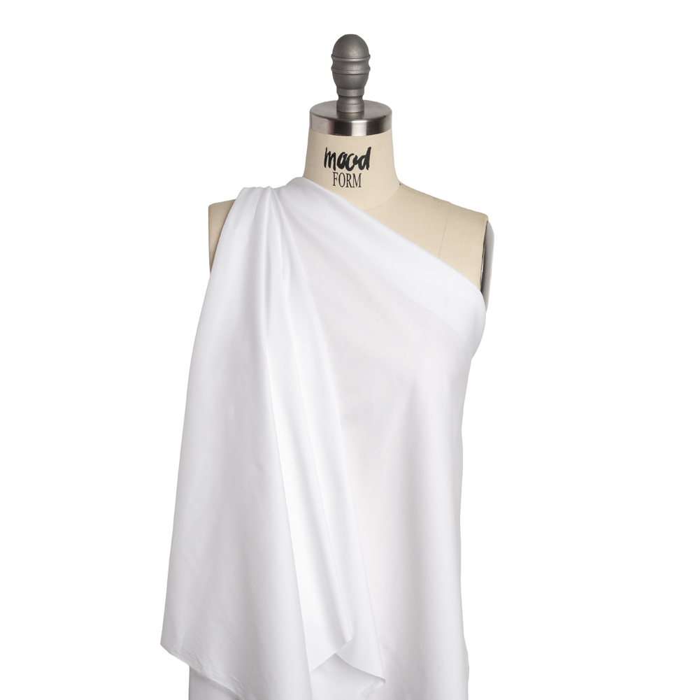 Stretch the lengths your fabric will go with this White Stretch Cotton and Nylon Poplin, featuring a cool hand and crisp drape.
