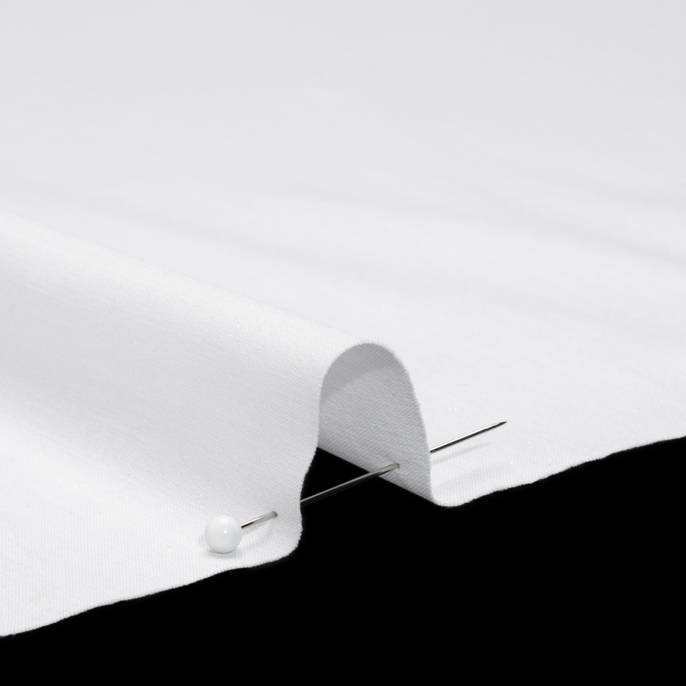 Stretch the lengths your fabric will go with this White Stretch Cotton and Nylon Poplin, featuring a cool hand and crisp drape.Suggested Projects: Shirts, Blouses, DressesContent: 78% Cotton, 19% Nylon, 3% SpandexStretch: 30% WeftwiseOpacity: TranslucentWork-wear staples begin with a reliable fabric—and this bright white poplin is the ideal choice! Featuring a comfortable one-way stretch along the weft, the cool hand and crisp drape of this poplin make it both easy to work with and incredibly polished. Craft perfect dress shirts and blouses, explore easy shirt dresses, and so much more. Translucent, a lining may be useful for some applications but generally won't be necessary.