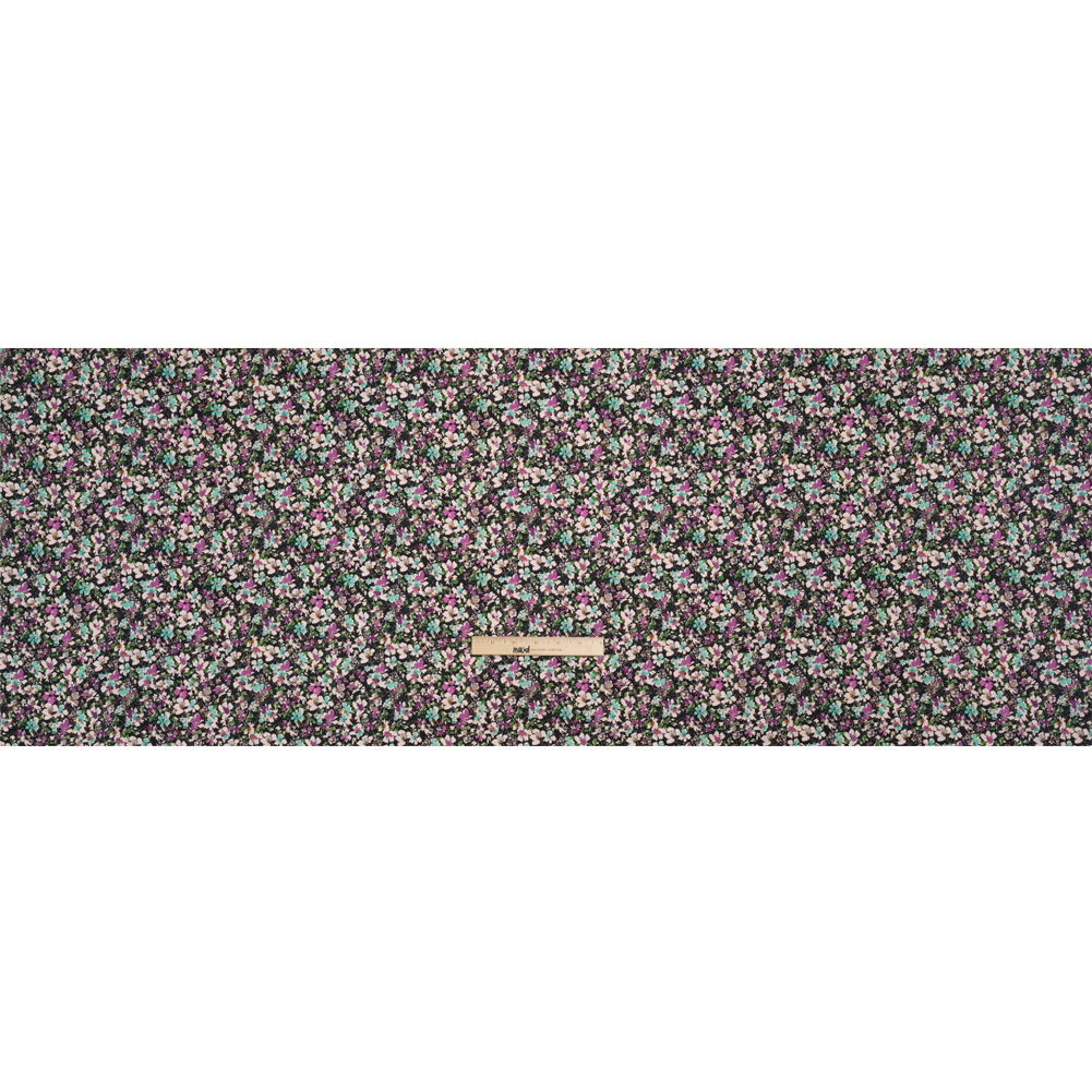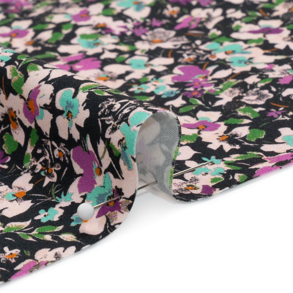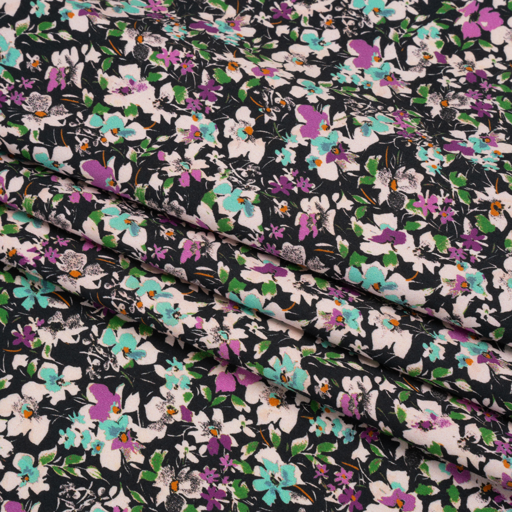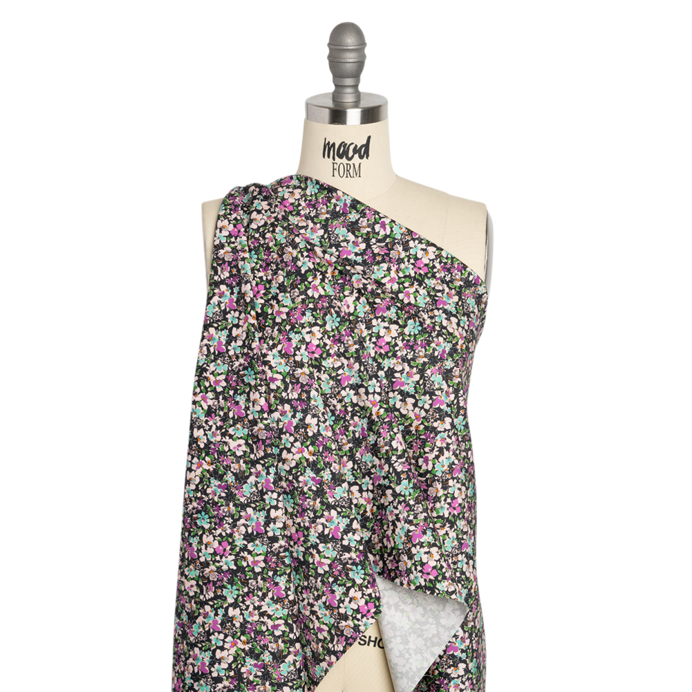 Stretch Cotton and Viscose Sateen Print - Magenta, Baby Blue and Green Floral - Mood Exclusive Meandering at Midnight