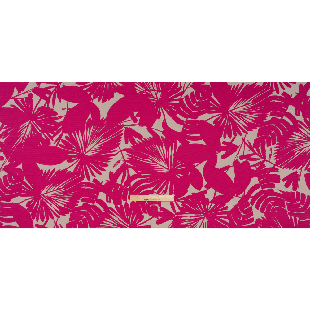 Indulge in the undeniable glamour of this Hot Pink and Light Gray Palm Leaves Stretch Cotton Faille Print—featuring a lightly ribbed hand and malleable drape.