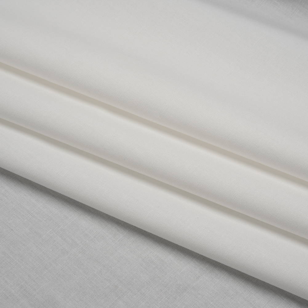Take a weight off your shoulder with this Off-White Stretch Cotton Poplin, featuring a cool hand and crisp drape.Suggested Projects: Dresses, Shirts, Skirts, BlousesContent: 98% Polyester, 2% SpandexStretch: 25% WeftwiseOpacity: TranslucentBe perfectly dressed for the infamous white party in this off-white cotton poplin. Featuring a comfortable one-way stretch along the weft, the cool hand and crisp drape of this poplin make it both easy to work with and incredibly polished. Craft perfect dress shirts and blouses, explore easy shirt dresses, and so much more. Translucent, a lining may be useful for some applications but generally won't be necessary.