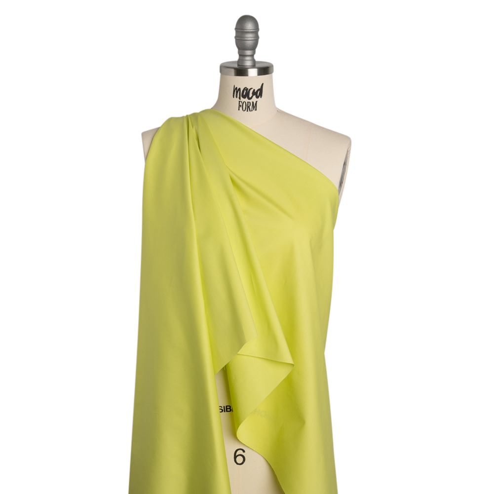 Ideas will spring forth from your mind with this Spring Green Stretch Cotton Poplin—featuring a cool, smooth hand and crisp drape.Suggested Projects: Shirts, Skirts, Dresses, ShortsContent: 98% Cotton, 2% SpandexStretch: 25% WeftwiseOpacity: Slightly TranslucentGive your garments some new life with this spring green poplin. With a slight stretch through the weft, this poplin features a cool, smooth hand and crisp drape—making it both easy to work with and incredibly polished. Use its unique, bright chartreuse hue to craft crisp dress shirts and blouses, nipped-waist shirt dresses and pleated skirts, and so much more! Slightly translucent, a lining is not necessary for most applications.
