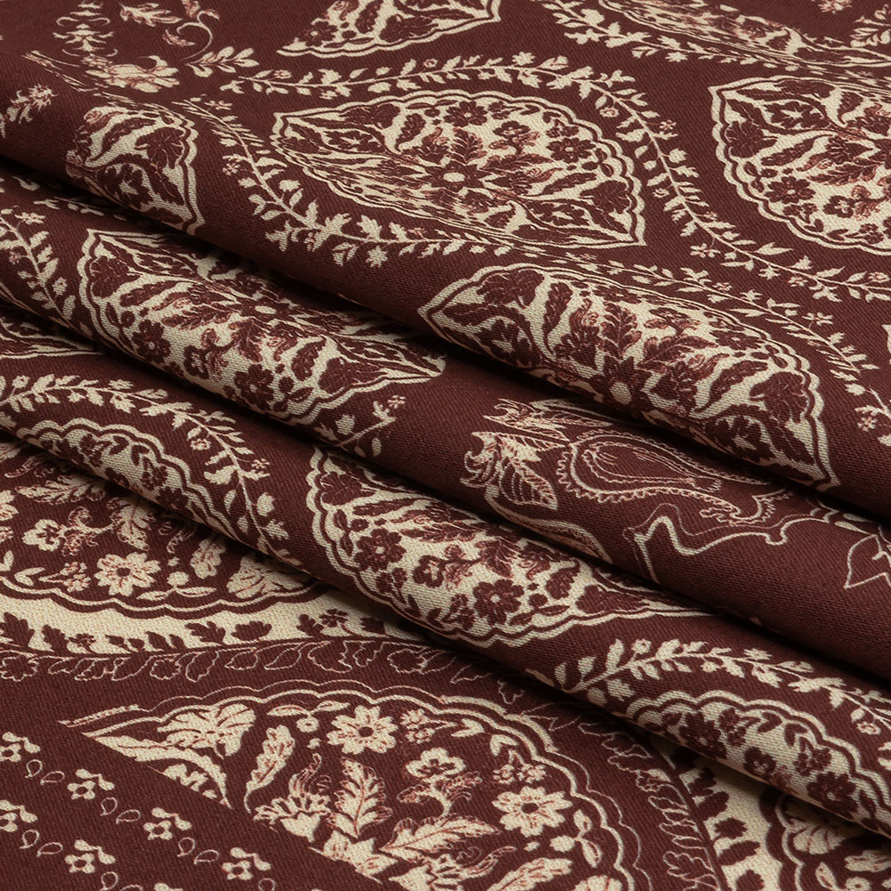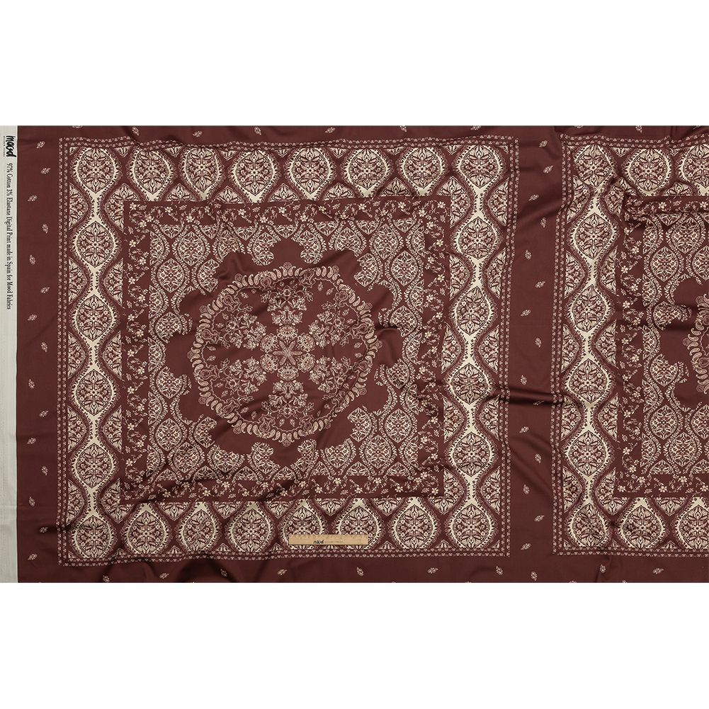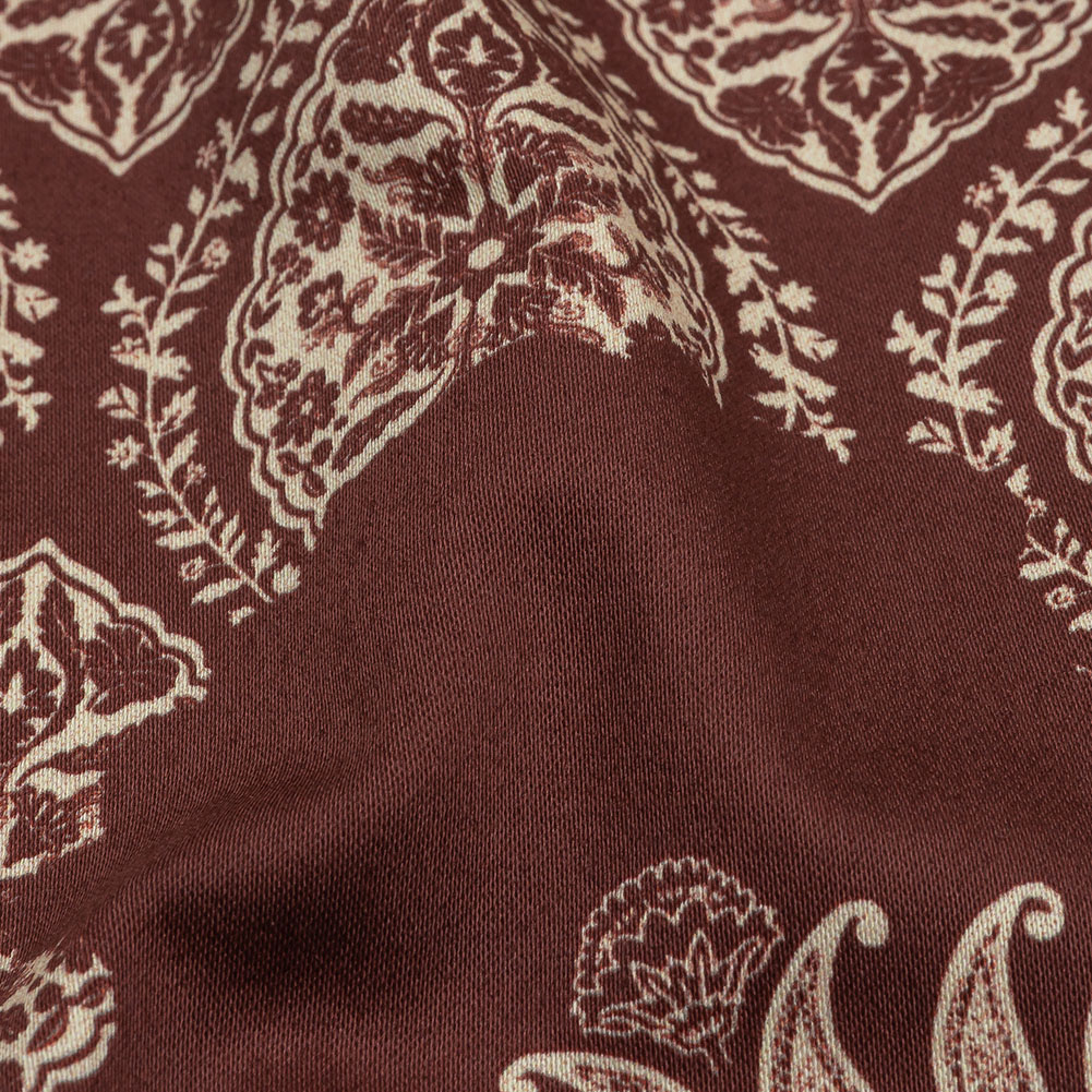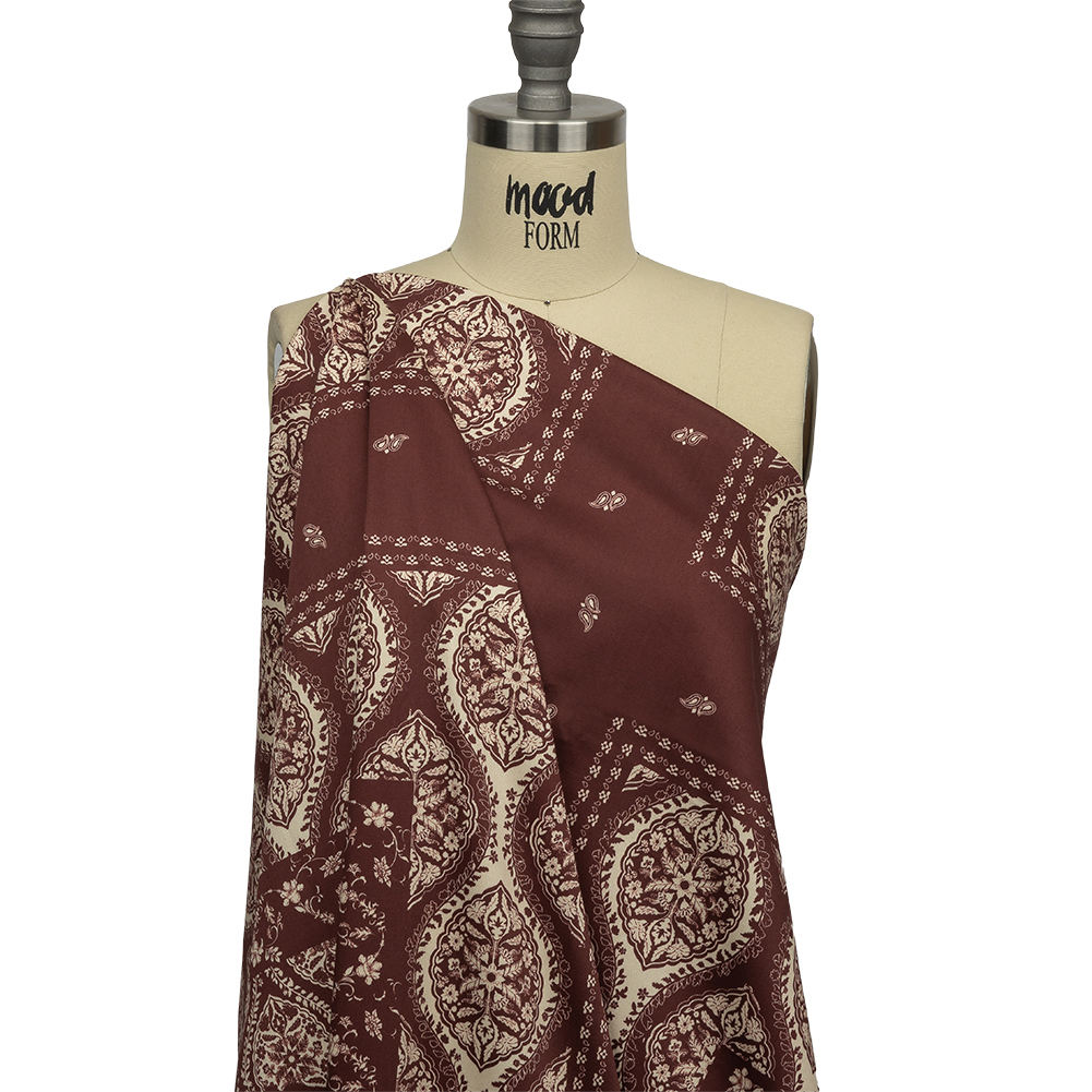 Stretch Cotton Sateen - Beige and Burgundy Paisley - Impressions in Time Print - Mood Exclusive Rockland Collection