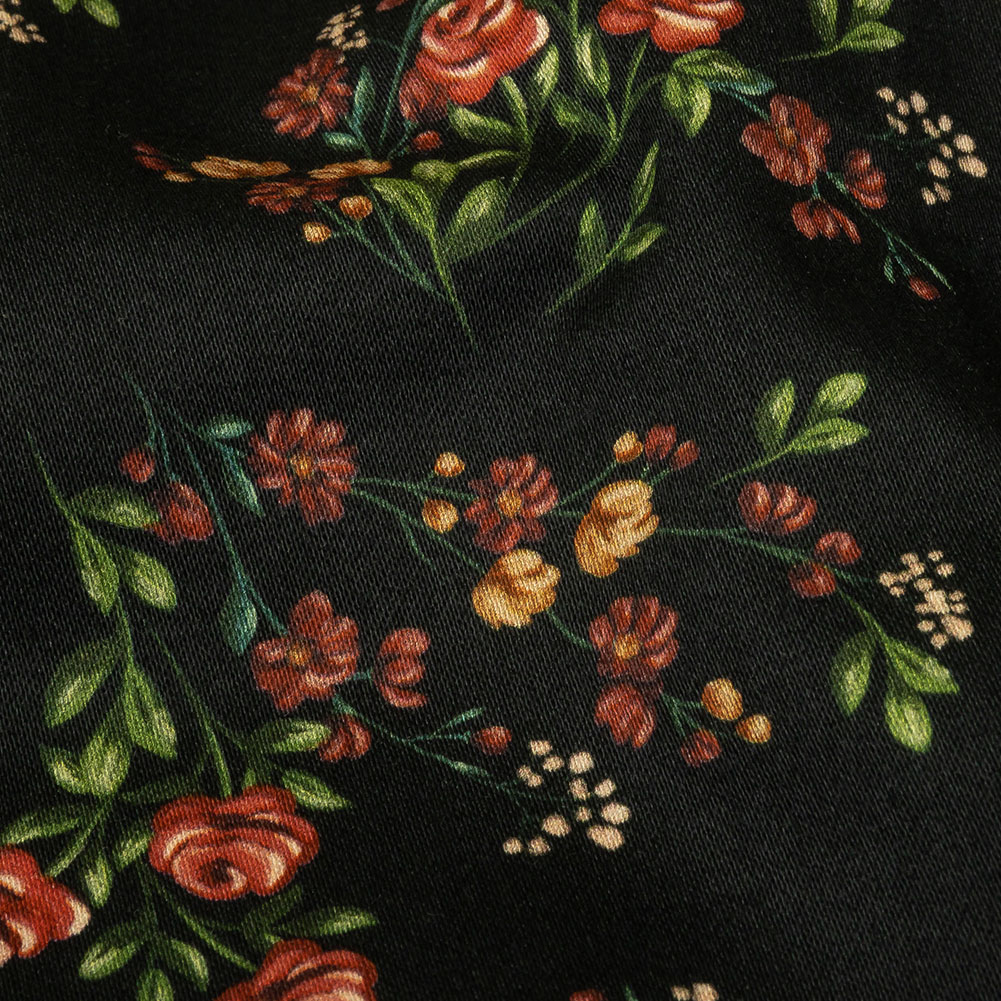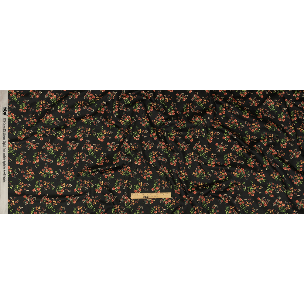 You've gathered a little bouquet and found there are no vases to be had. Maybe a mason jar would be the perfect vessel for the flowers in our Mood Exclusive Mason Jar Bouquet Stretch Cotton Sateen, featuring red and dark gold flowers on green stems, all on a rich black background. Crisp and malleable in drape, cotton sateen is prized for its breathability and wrinkle-resistant qualities. Part of The Rockland Collection, this particular variety is smooth and soft in hand, with a subtle sheen and 10% stretch through the weft. The sewing possibilities are endless; try trousers, dresses, jackets, or structured tops. Swing by our Mood Sewciety Blog to take a glance at over 300 free sewing patterns for more inspiration. For cotton sateen, we recommend the Taro Jumper, Liv Pants, and Avelia Bomber.MoodEarth Verified: BCI, or Better Cotton Initiative, focuses on the exchange of good practices, including economic, environmental, and social concerns, in the production of cotton. For more information on Mood's sustainability initiatives, check out MoodEarth here.