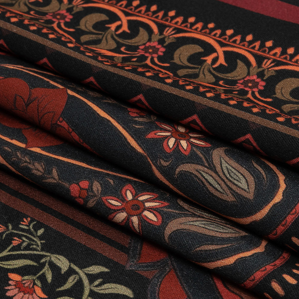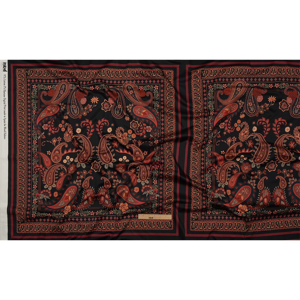 Stretch Cotton Sateen - Black and Red Paisley - Kaleidoscope Dreams Print - Mood Exclusive Rockland Collection