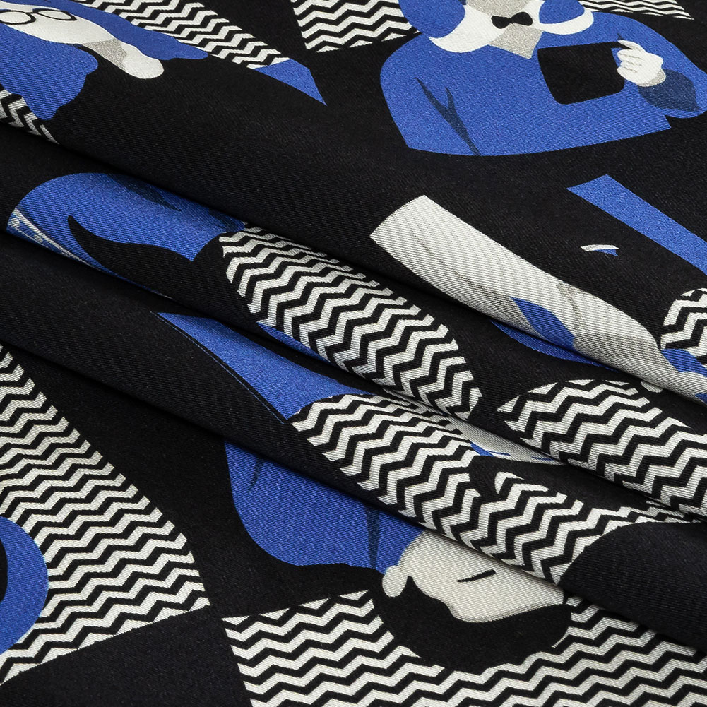 Stop the presses—we need to let everyone know about your headline-making self wearing this Mood Exclusive In the Blues Stretch Cotton Sateen! Illustrated figures appear, like news channel talking heads, in bright shades of blue and white over a graphic black background. Crisp and malleable in drape, cotton sateen is prized for its breathability and wrinkle-resistant qualities. From The Indigo Collection, this particular variety is smooth and soft in hand, with a subtle sheen and 10% stretch through the weft. The sewing possibilities are endless; try trousers, dresses, jackets, or structured tops. Swing by our Mood Sewciety Blog to take a glance at over 300 free sewing patterns for more inspiration. For cotton sateen, we recommend the Poppy Dress,