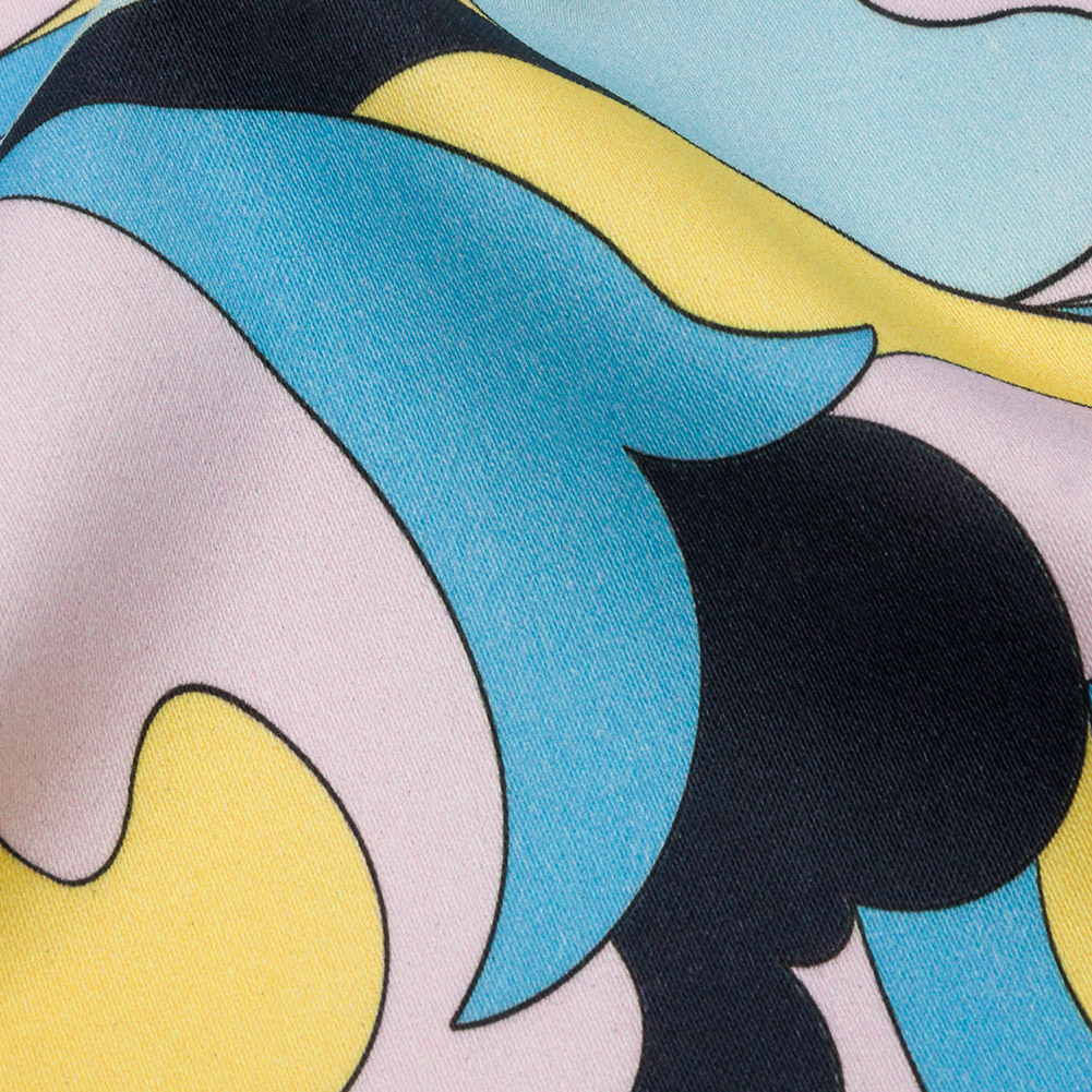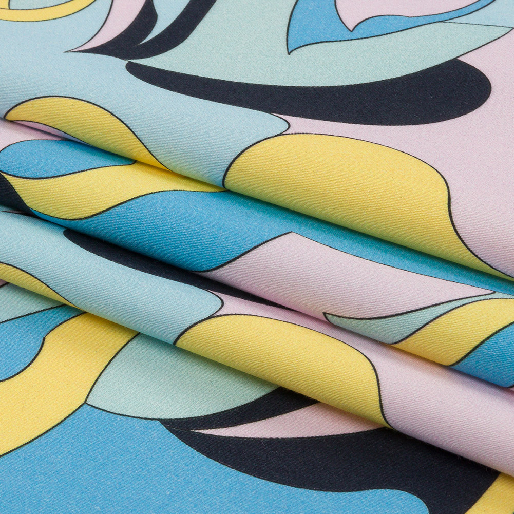 Stretch Cotton Sateen - Blue, Pink and Yellow Abstract - Magical Mystery Print - Mood Exclusive Groove Collection