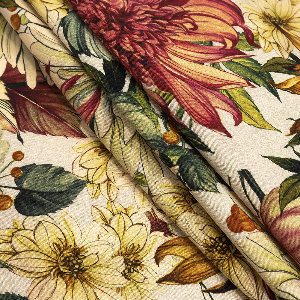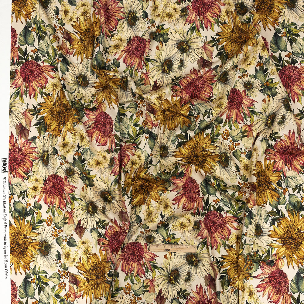 Stretch Cotton Sateen - Cream, Red and Yellow Floral - Sogni d'Oro Print - Mood Exclusive Viso Collection