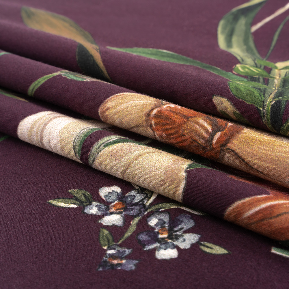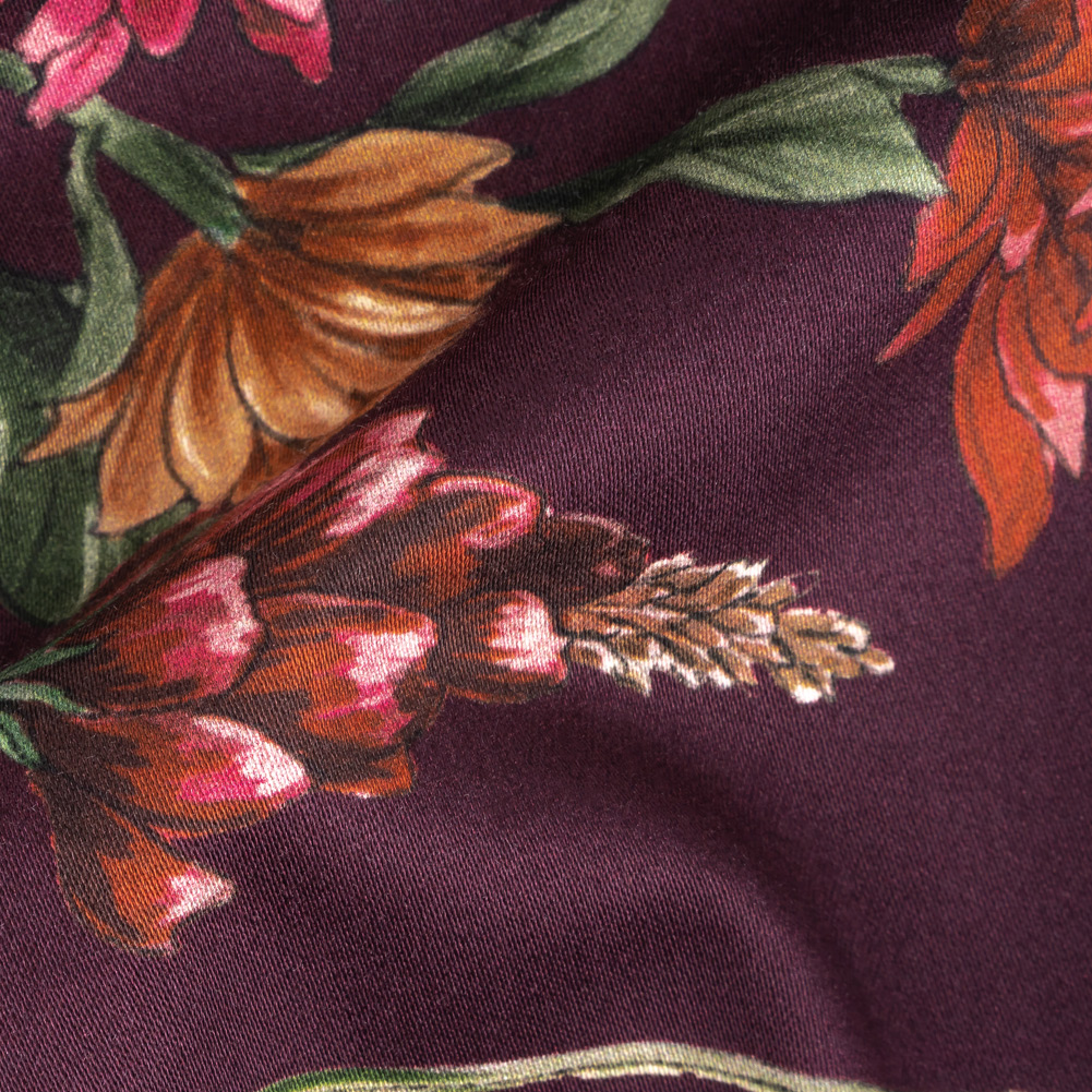 Stretch Cotton Sateen - Dark Purple Floral - Wild Fantasia Print - Mood Exclusive Wisteria Collection