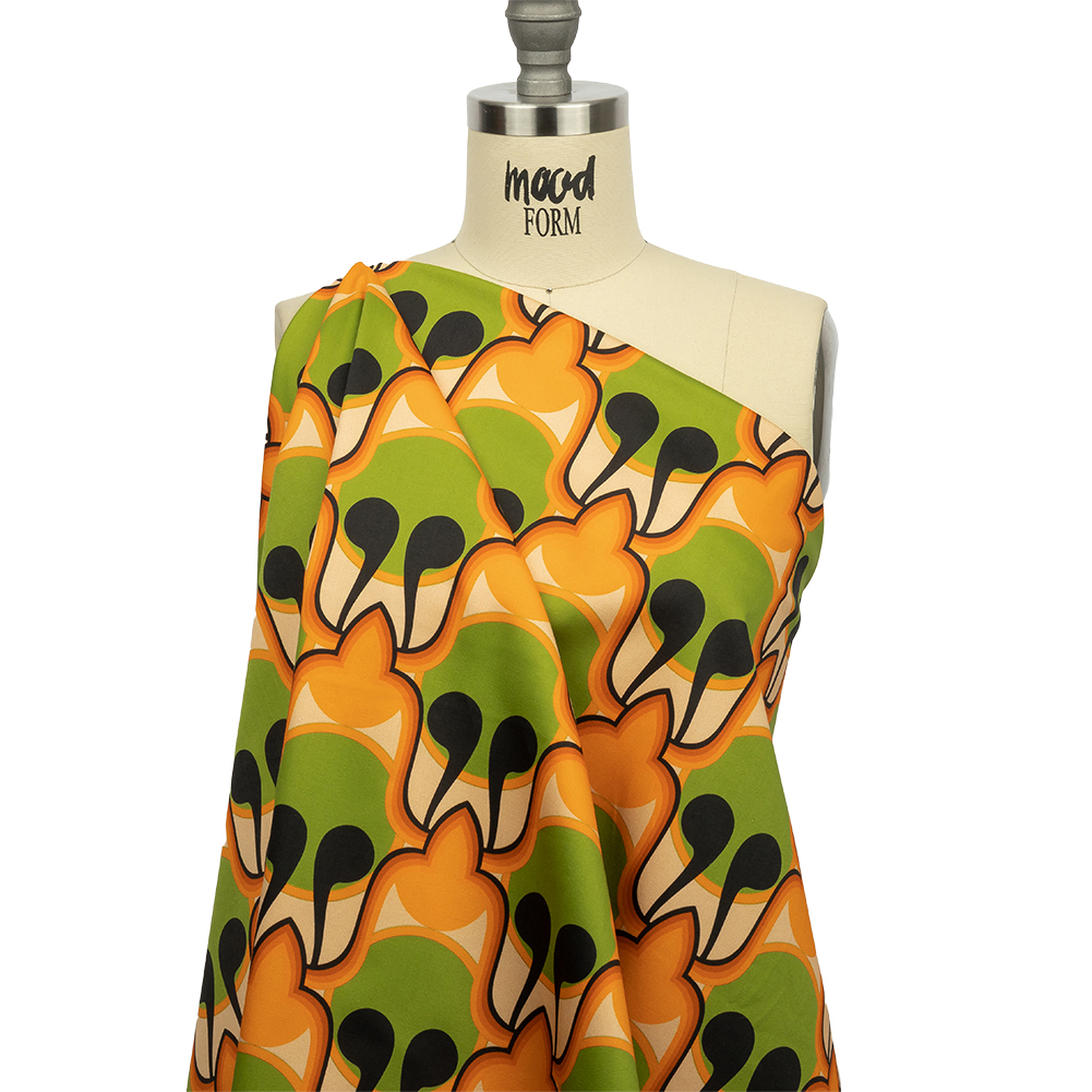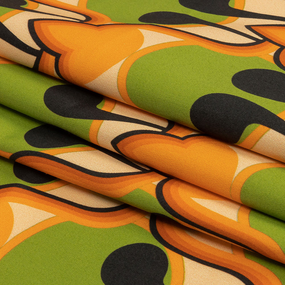 Stretch Cotton Sateen - Green and Orange Abstract - Bohemian Bells Print - Mood Exclusive Groove Collection