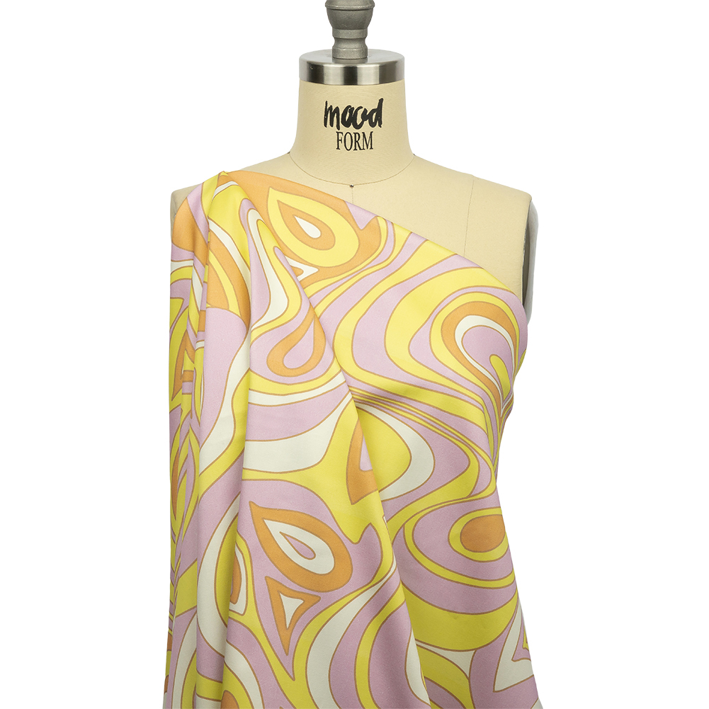 Stretch Cotton Sateen - Light Purple and Yellow Abstract - Carnival Candy Print - Mood Exclusive Groove Collection