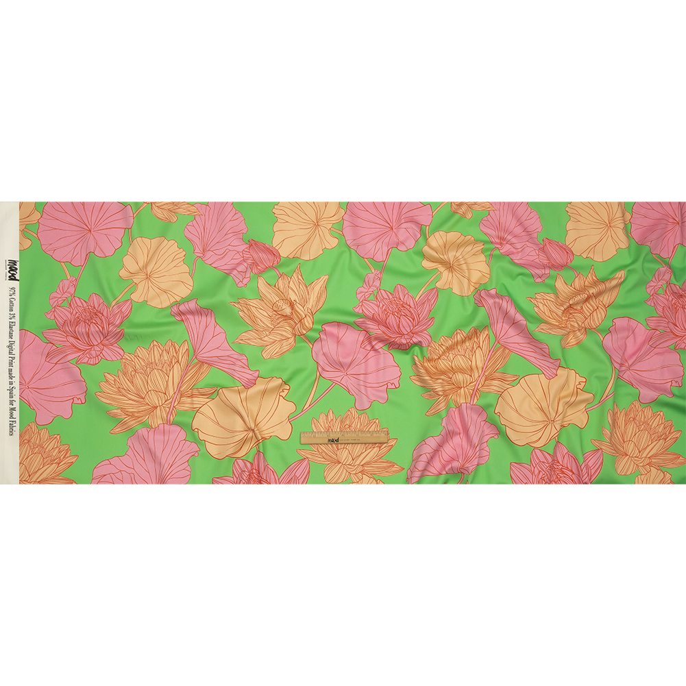 Take a trip through this Mood Exclusive Lime Valley of Lilies Stretch Cotton Sateen.
