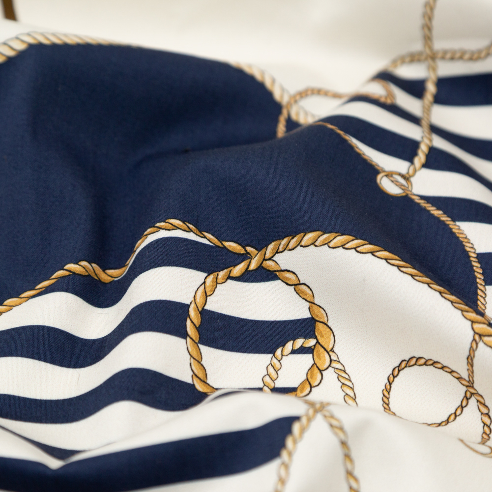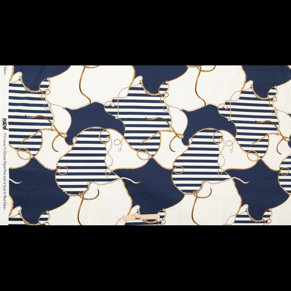 Stretch Cotton Sateen - Navy and White Ropes and Stripes - Rope Scribbles Print - Mood Exclusive St. Tropez Collection
