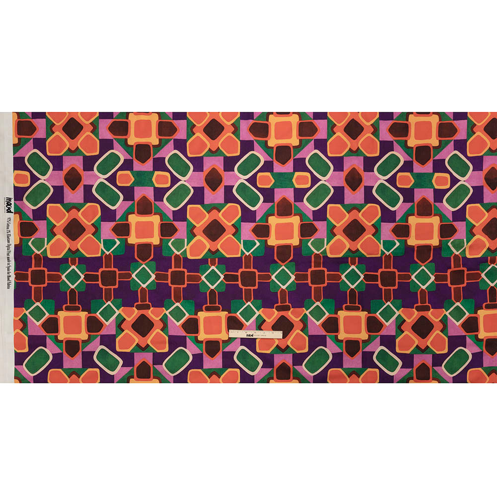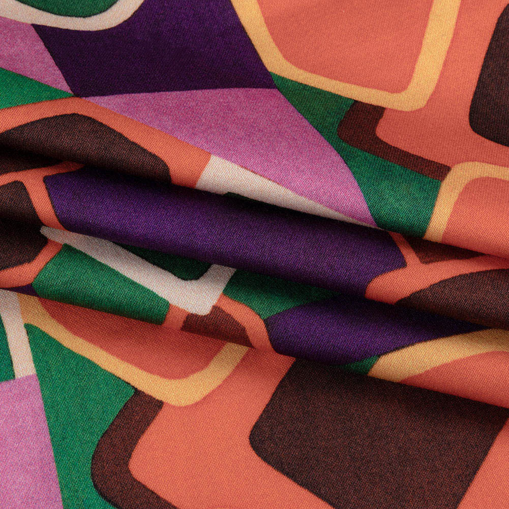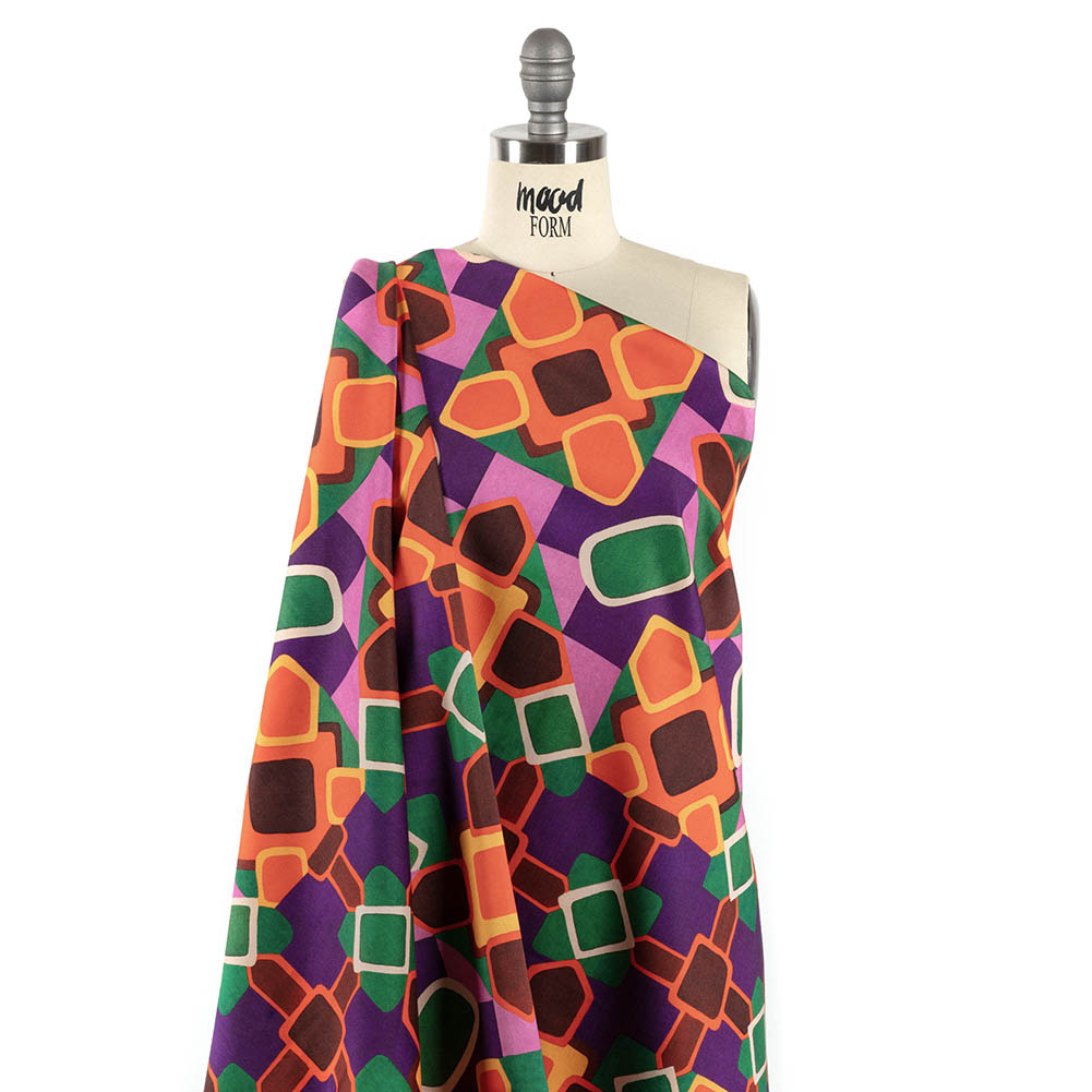 Stretch Cotton Sateen - Orange and Purple Geometric Tiles - Jukebox Jivin' Print - Mood Exclusive Yesterday Collection