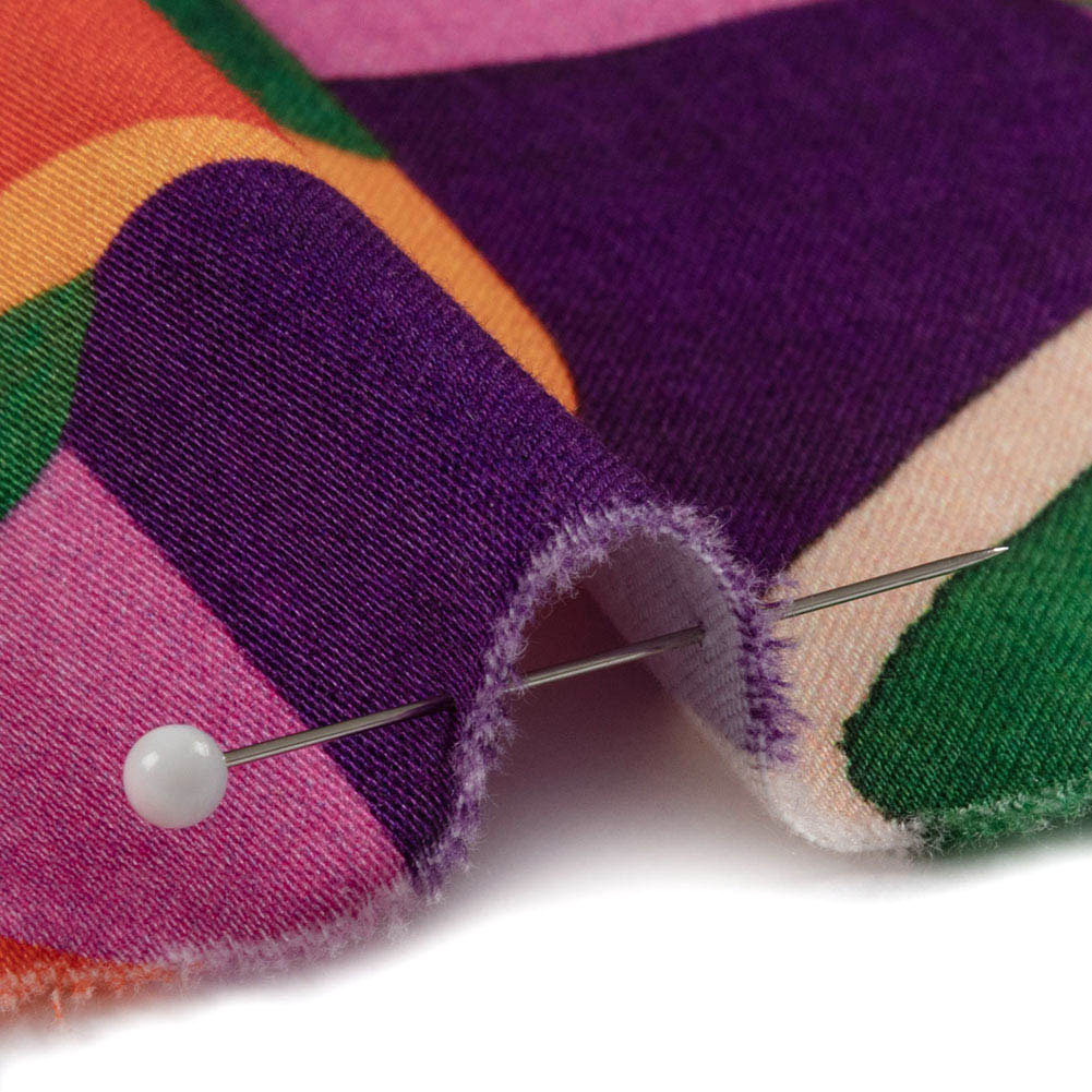 Play that funky music and get moving in this Mood Exclusive Orange Jukebox Jivin’ Stretch Cotton Sateen! A bold arrangement of squares, diamonds, and rectangles tile the face in shades of purple, orange, green, brown, and pink.